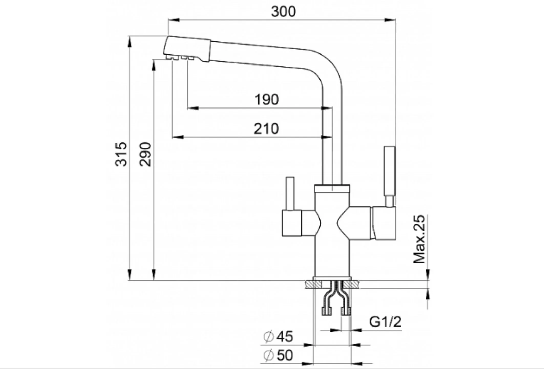 | Высота (H, мм) | 315 |