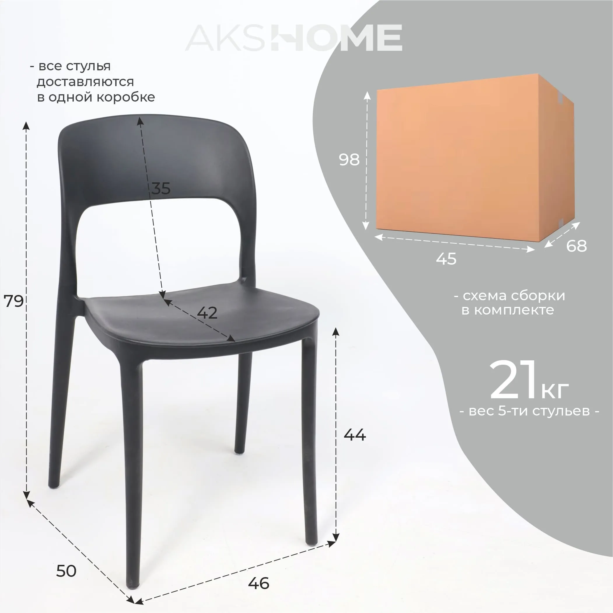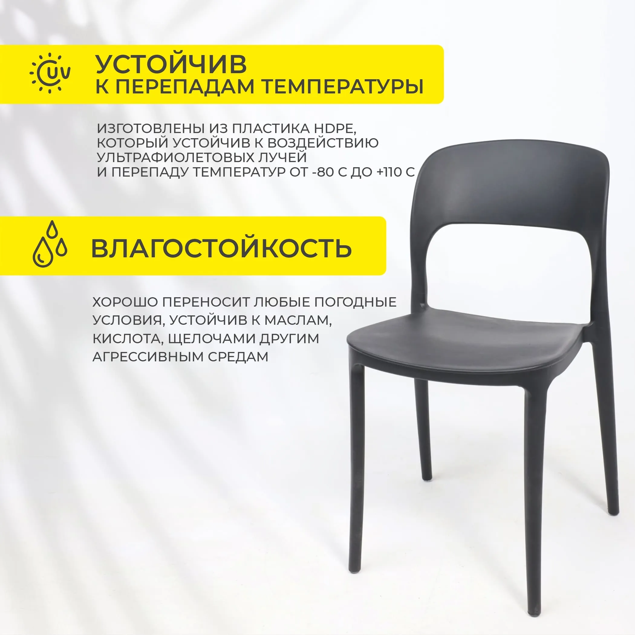 Стильные стулья OLAF отлично подойдут для сада, кухни, кафе, выездных мероприятий и пляжного отдыха. Изготовлены из пластика, который устойчив к воздействию ультрафиолетовых лучей. Стулья легко транспортируются, не занимают много места, сохраняют свои эстетические свойства даже при длительном пребывании на открытом воздухе. Влагостойкий материл хорошо переносит любые погодные условия и перепады температур. Черный цвет подчеркнет современный дизайн, поможет расставить акценты в интерьере в комбинации с другими цветами. Максимальная нагрузка - до 120 кг. Ширина: 460 мм., глубина: 500 мм., высота: 790 мм., высота до сиденья: 440 мм. Пластиковые стулья OLAF не требуют особого ухода. Достаточно обычной влажной тряпки для удаления пыли и загрязнений с поверхности мебели.