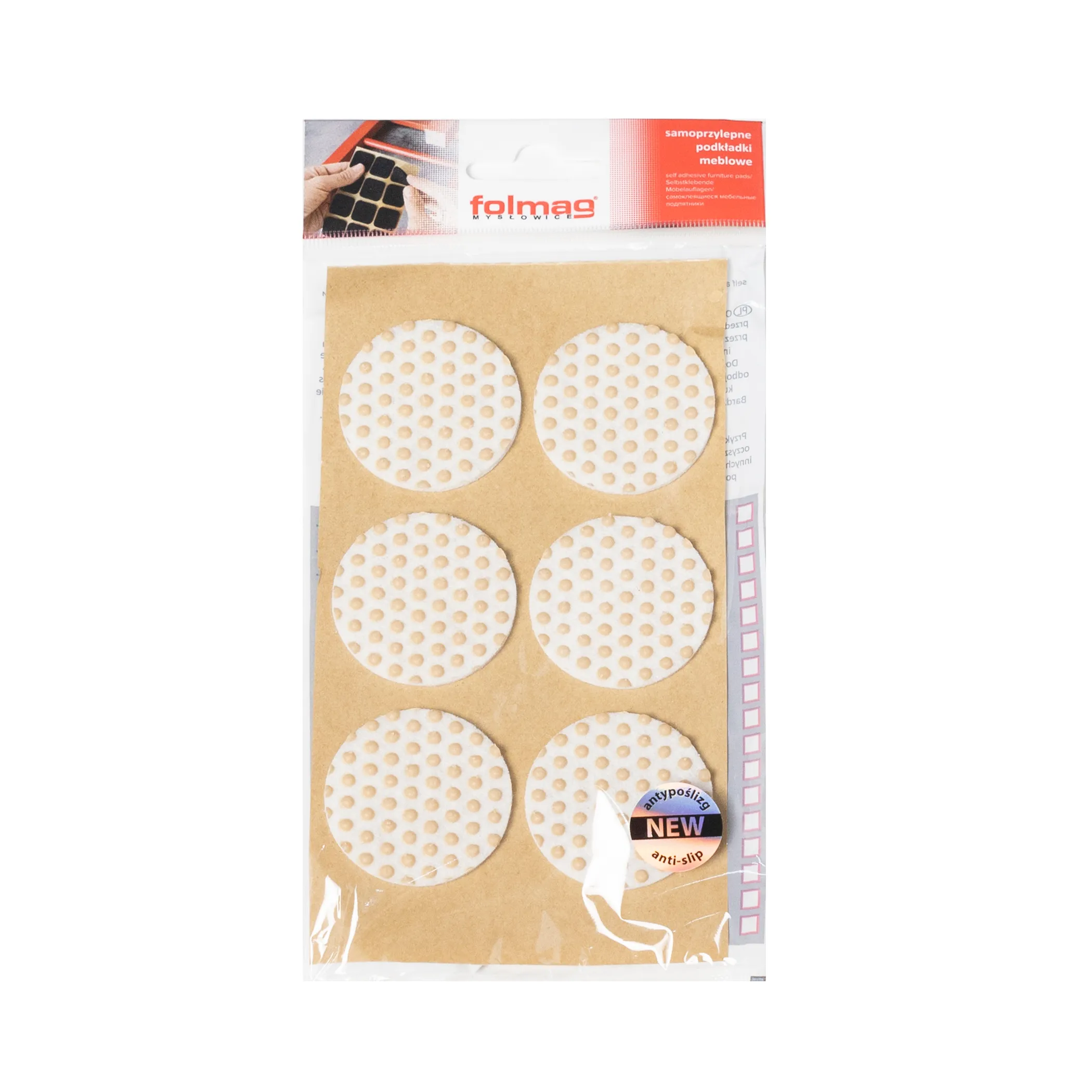 Подкладка самоприлипающая фетровая прорезиненная 40 х 40мм (1упак.=6шт), белая, Folmag