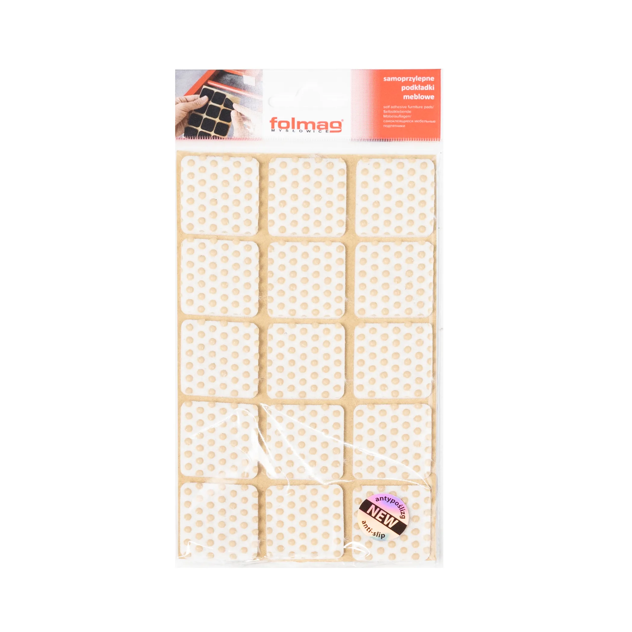 Подкладка самоприлипающая фетровая прорезиненная 25 х 25мм (1упак.=18шт), белая, Folmag