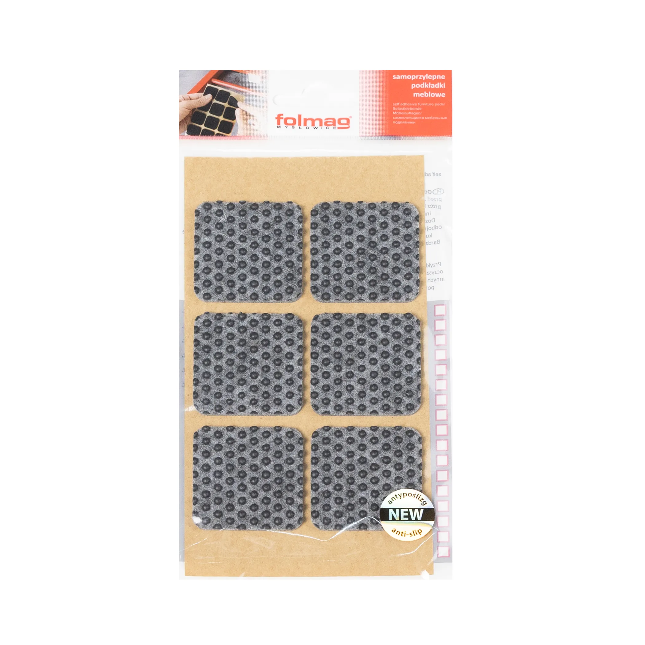 Подкладка самоприлипающая фетровая прорезиненная 40 х 40мм (1упак.=6шт), серая, Folmag