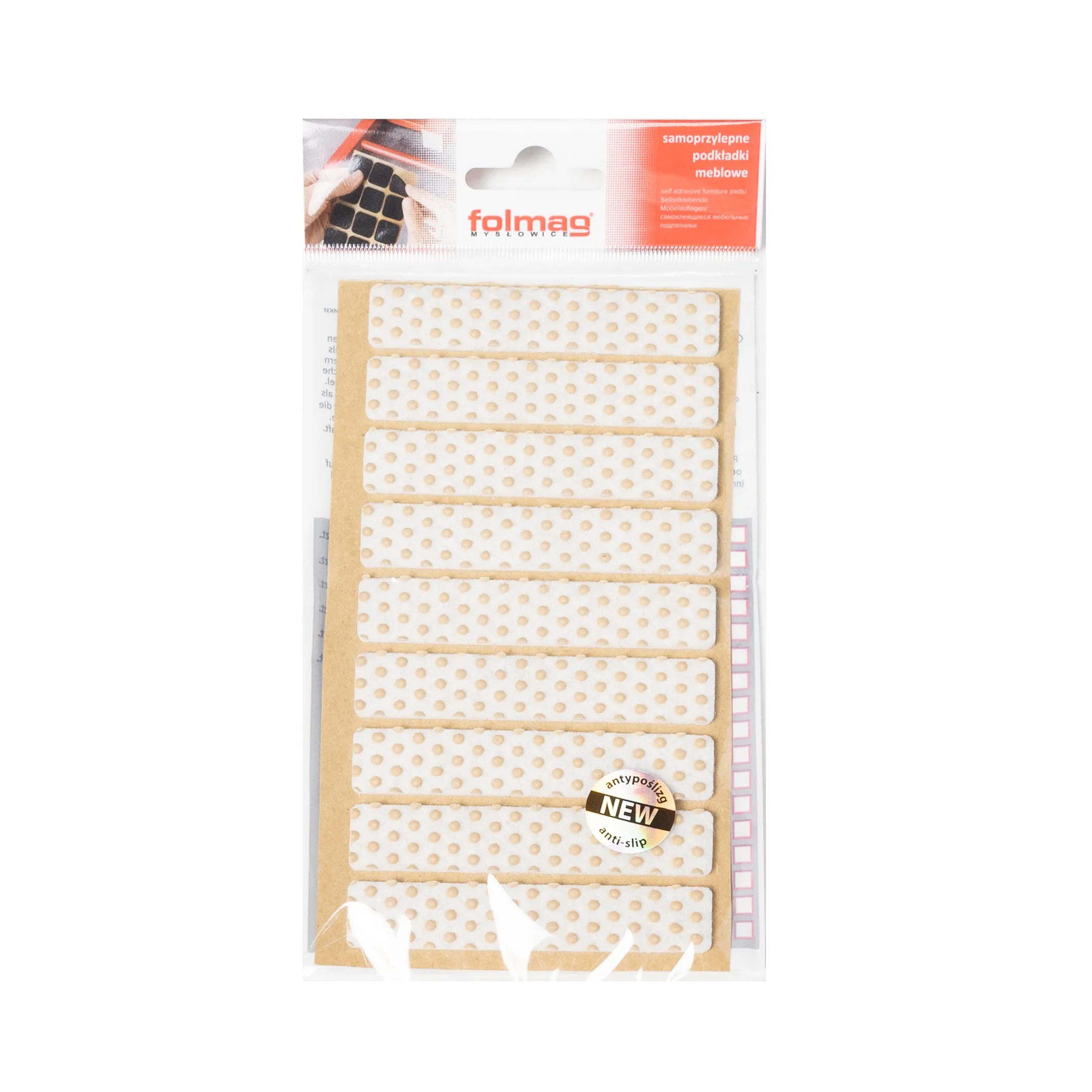 Подкладка самоприлипающая фетровая прорезиненная 15 х 80мм (1упак.=9шт), белая, Folmag