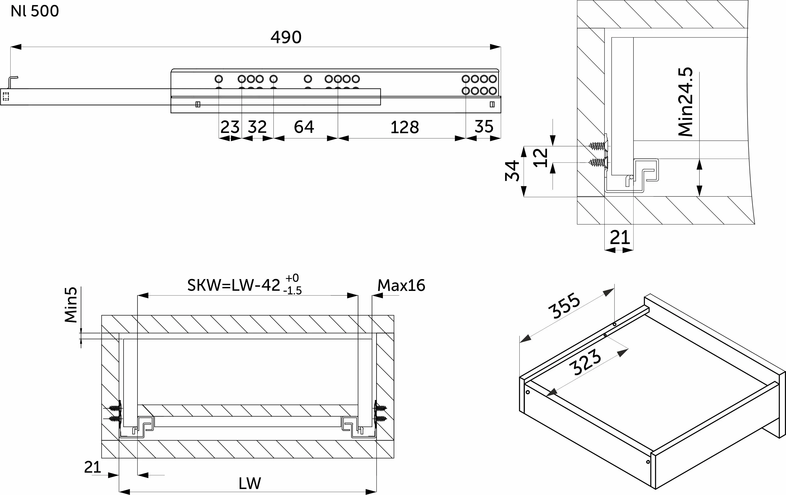 | Длина направляющей (L, мм) | 500 |