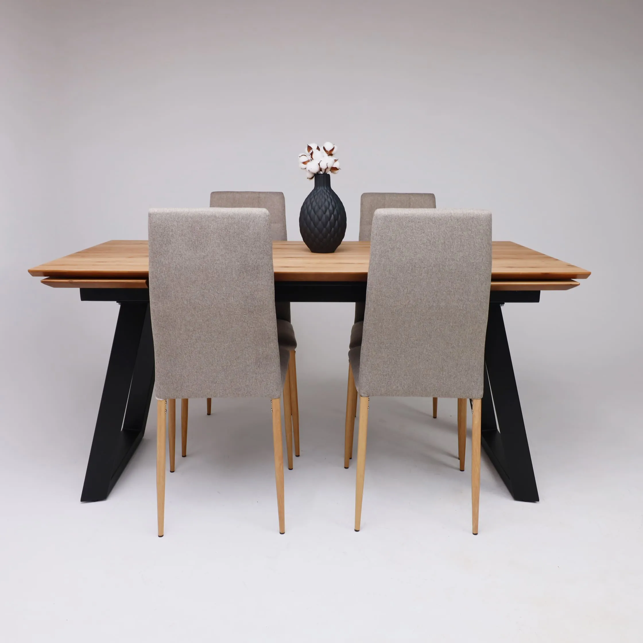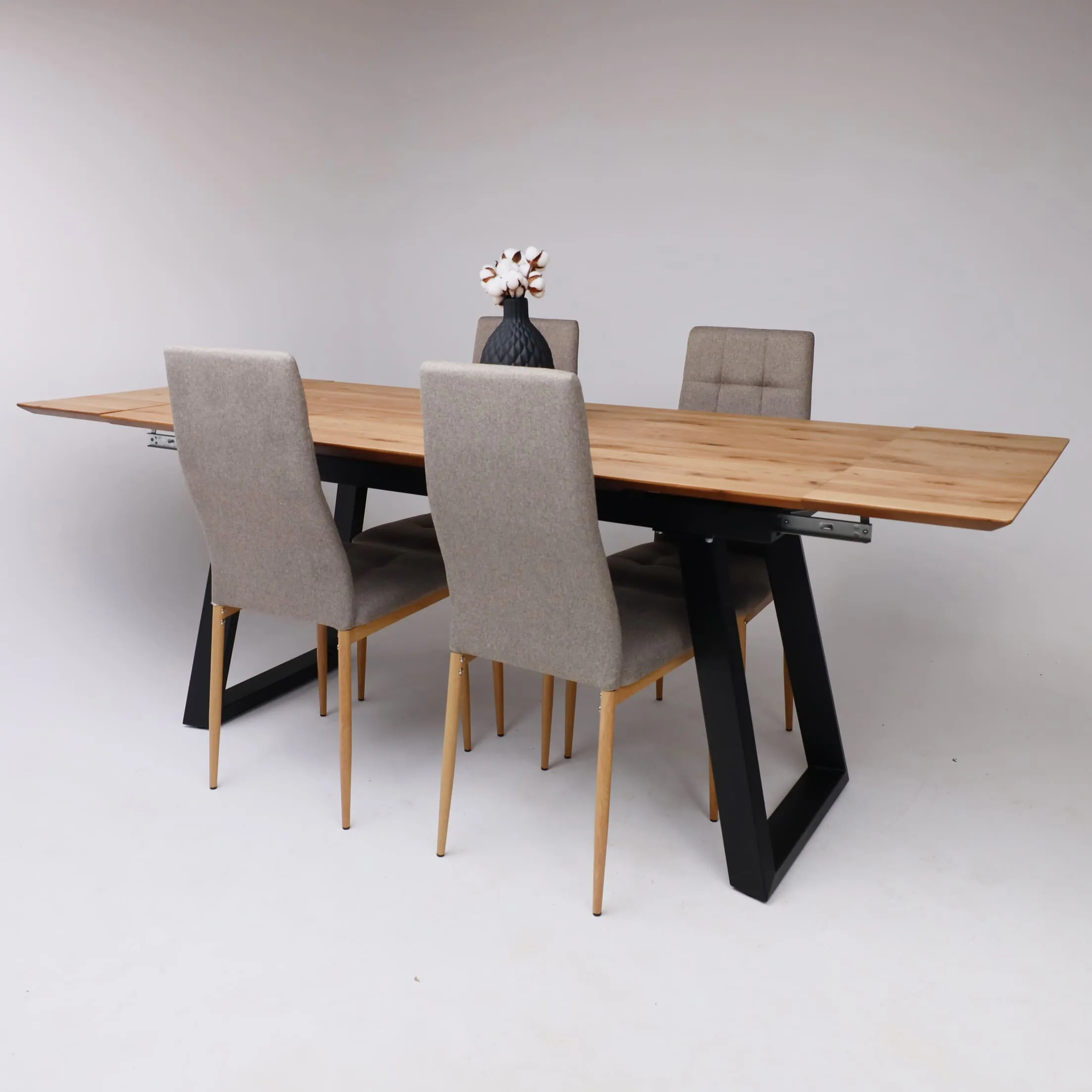 Стол САНГАЙ раздвижной, 136(196)*80*80, дуб натуральный / черный (ПрР-7 DSW (02) ТрН/Р-80)