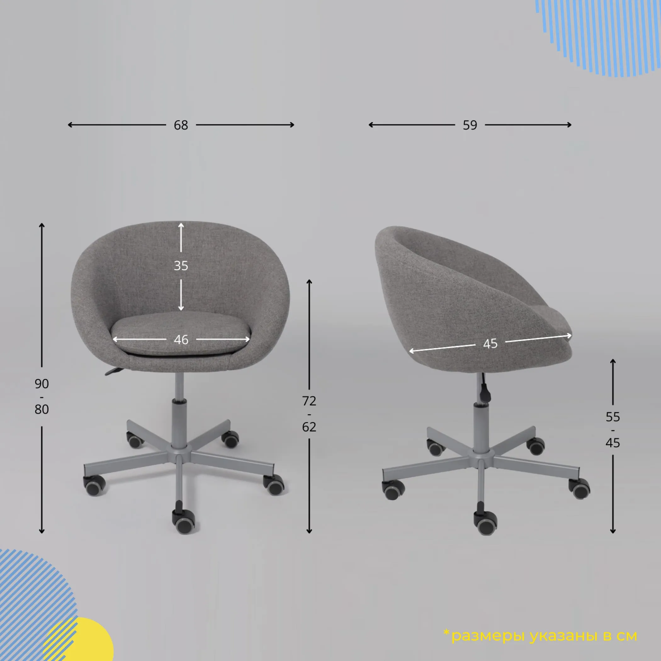 Кресло поворотное ELENA, ткань, серый