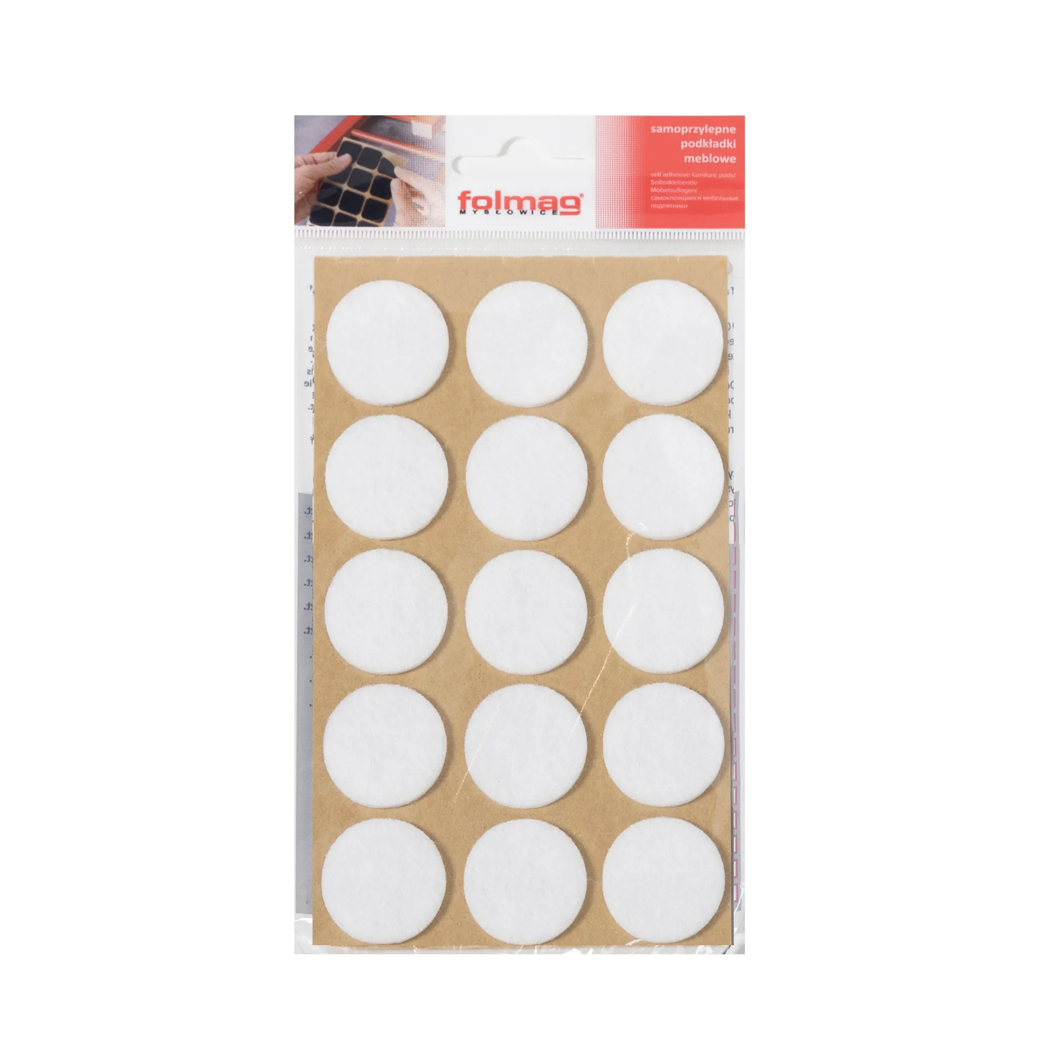 Подкладка самоприлипающая фетровая d30мм (1лист-15шт) белая Folmag
