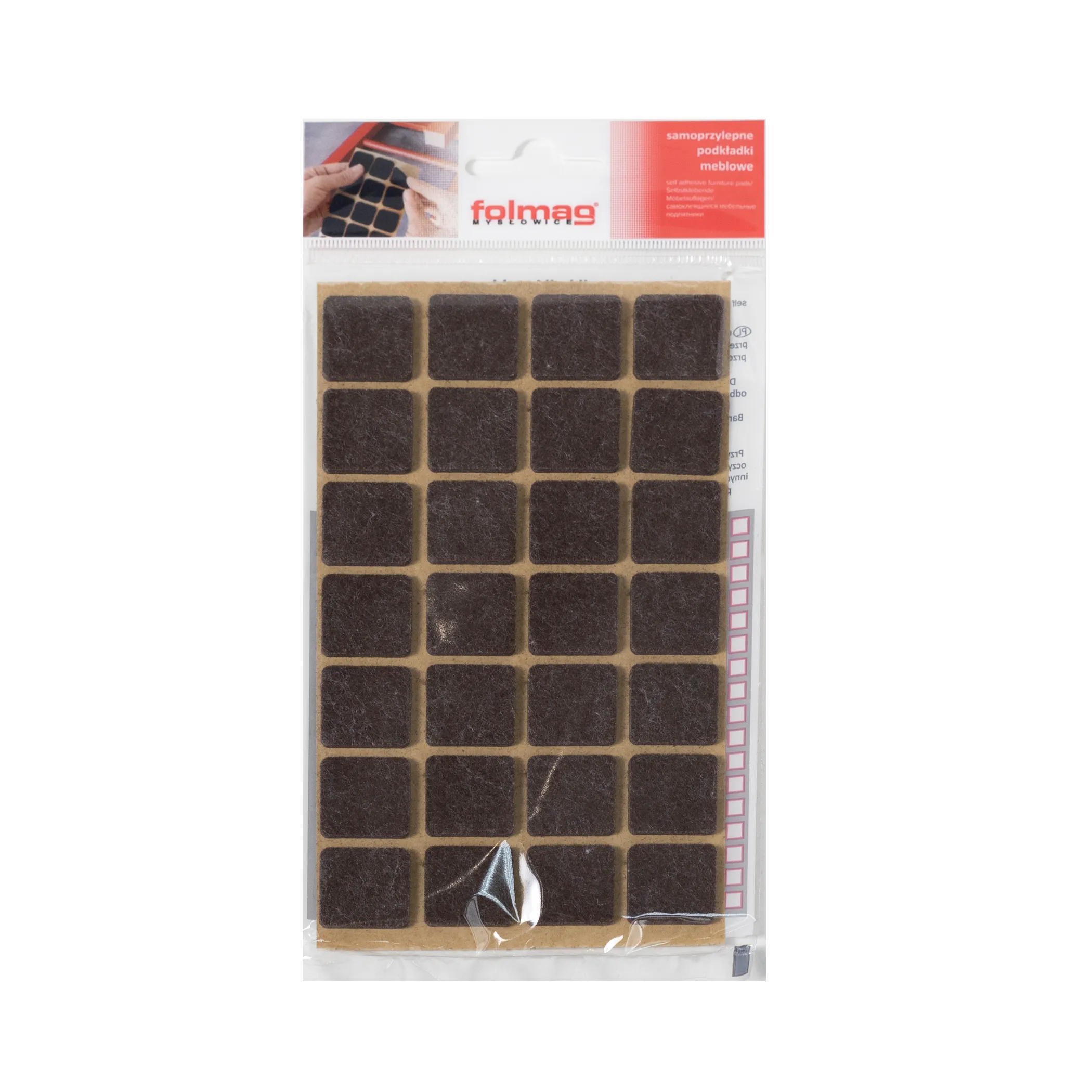 Подкладка самоприлипающая фетровая 40х40мм (1лист-8шт) коричневая Folmag
