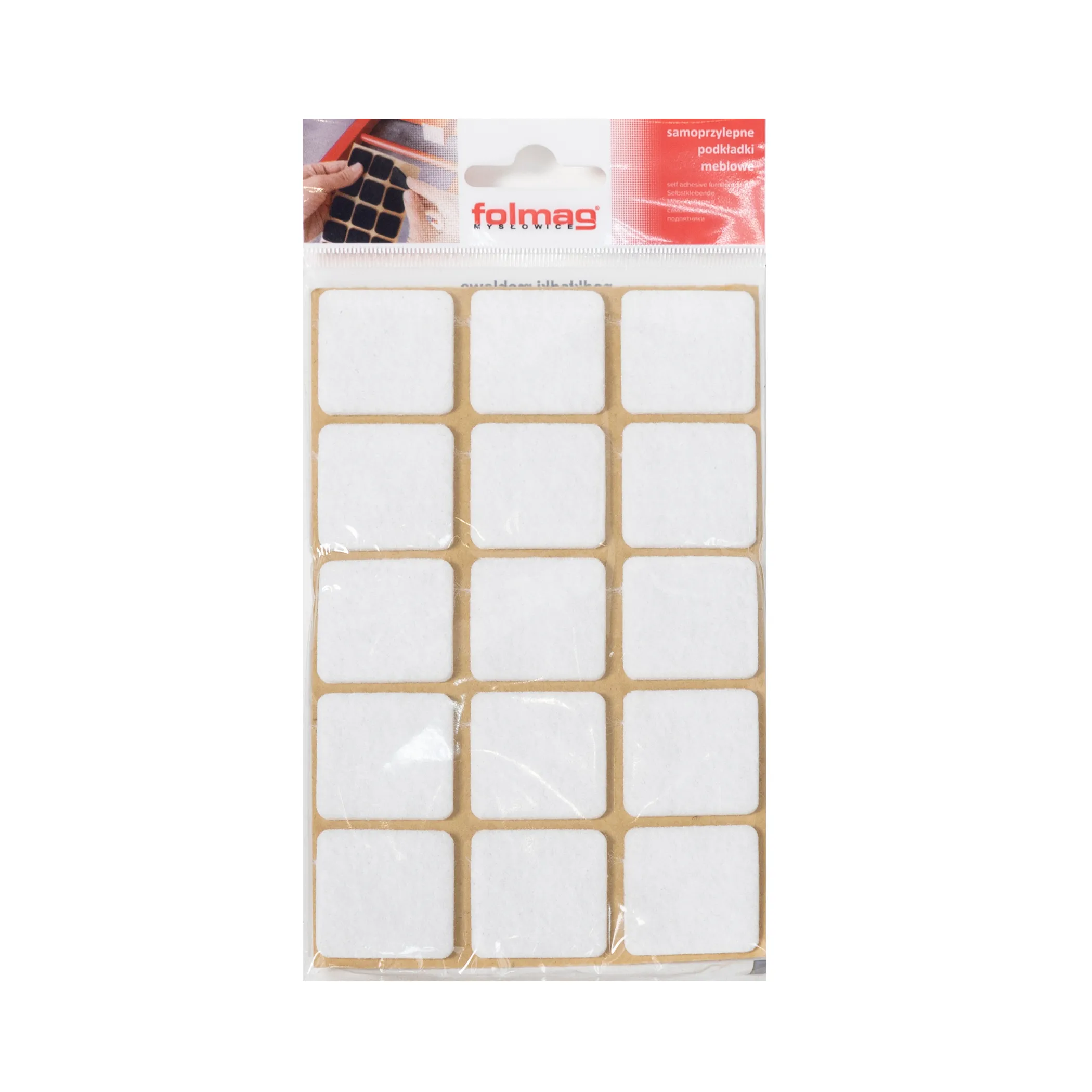 Подкладка самоприлипающая фетровая 30х30мм (1лист-15шт) белая Folmag