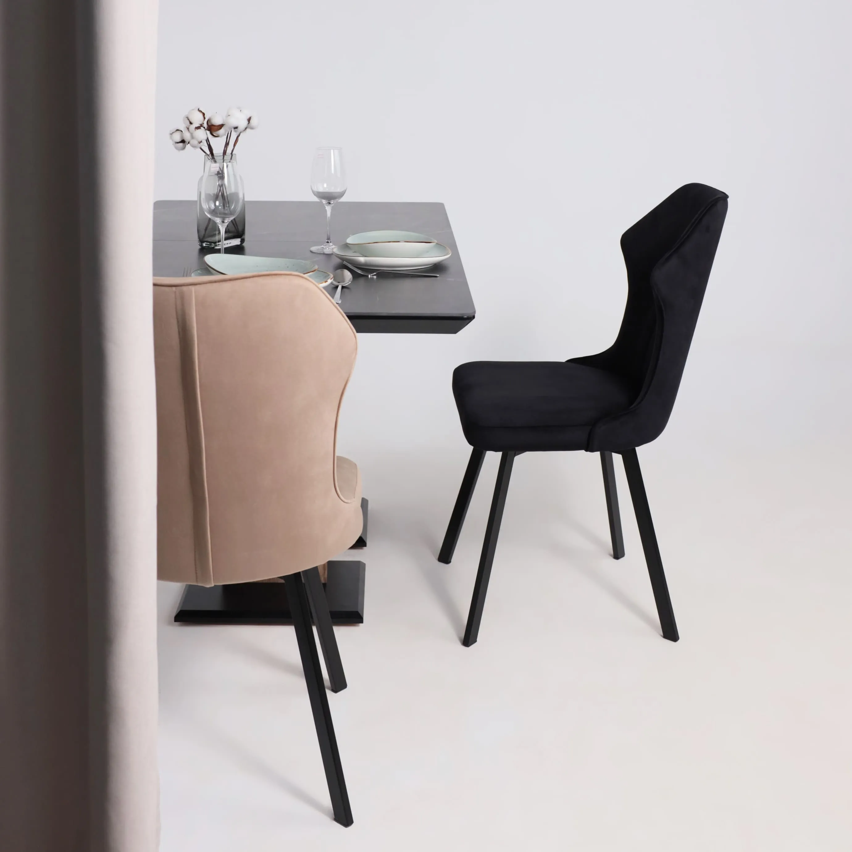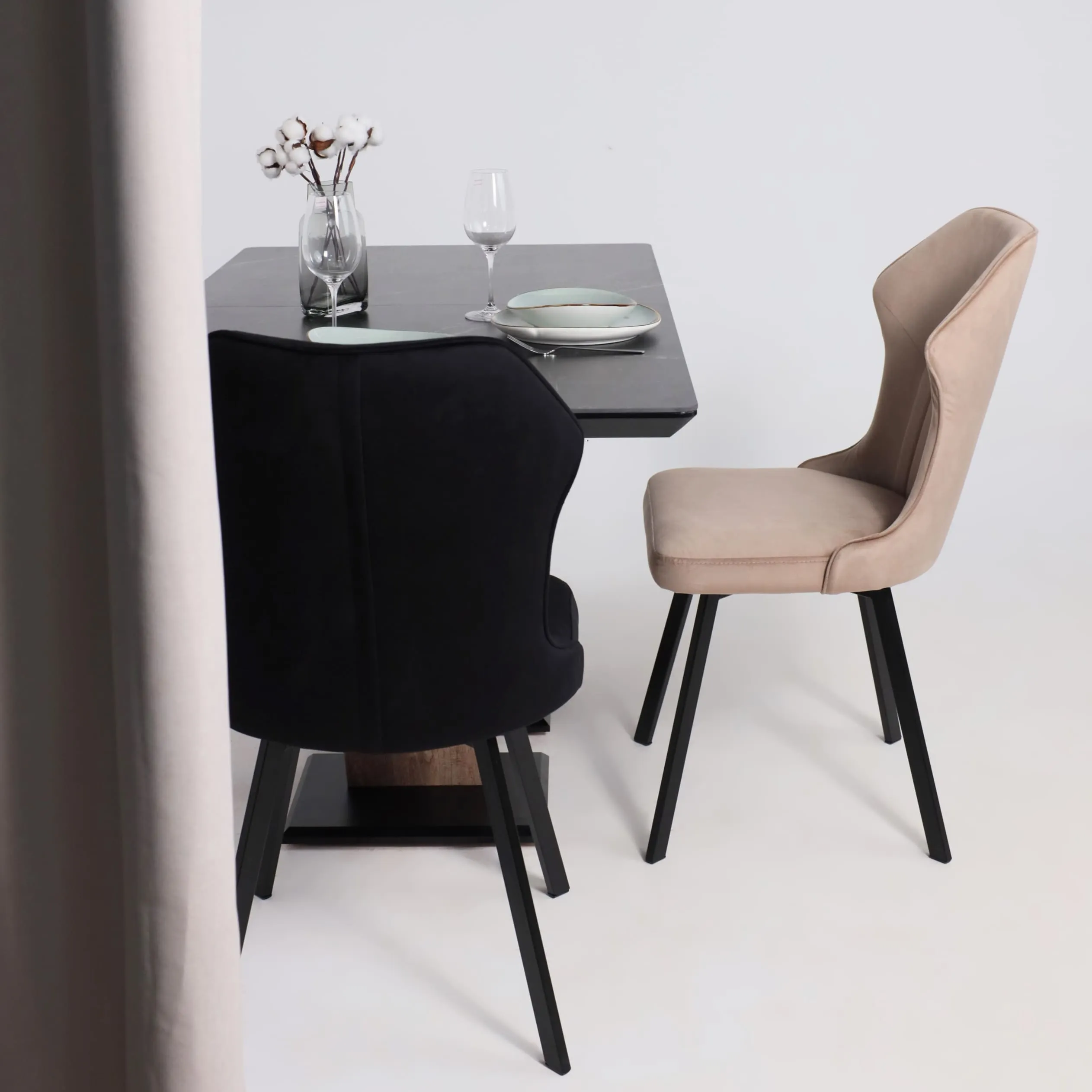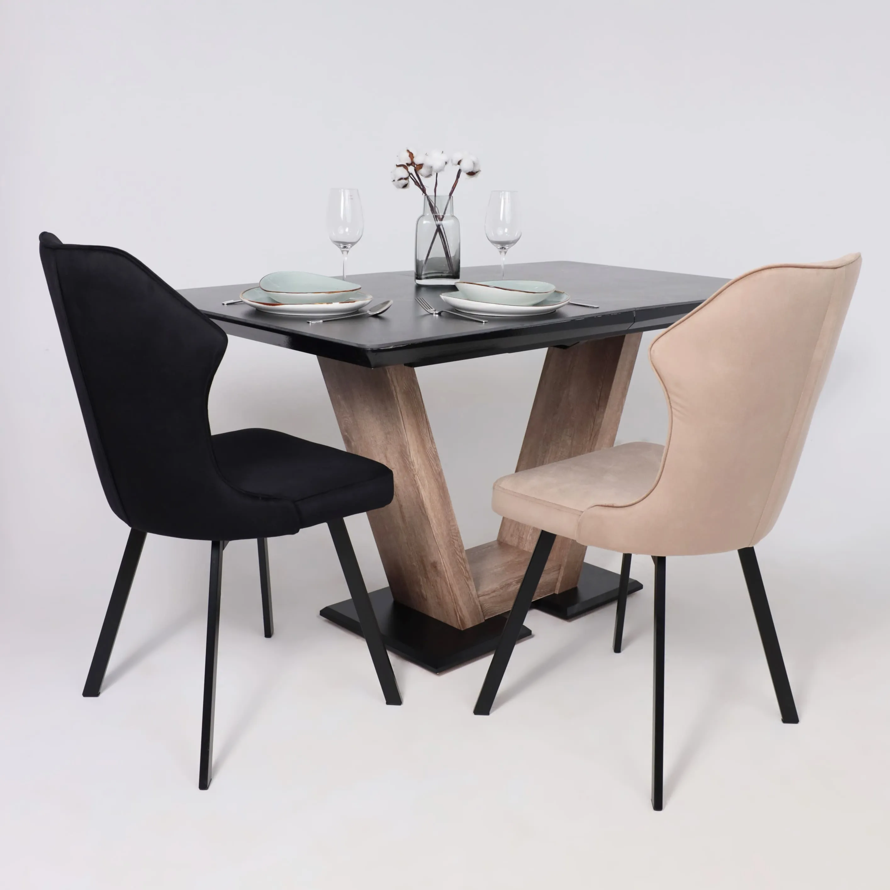 Стол TIRK RADIAL-94, раздвижной 94(126)х64, Дымчатая керамика/Чёрный