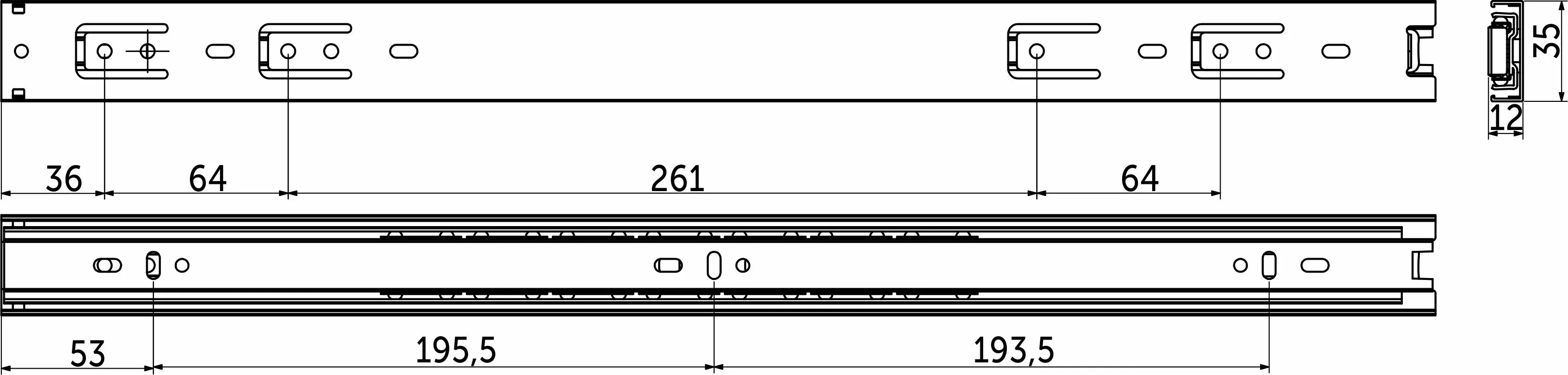 Направляющая для мебели GRIDLI изготовлена из холоднокатаной стали толщиной 0,65*0,65*0,65 мм, имеет резиновый фиксатор от самопроизвольного открытия. Фактическая высота данной направляющей 35 мм, а её длина – 500 мм.
