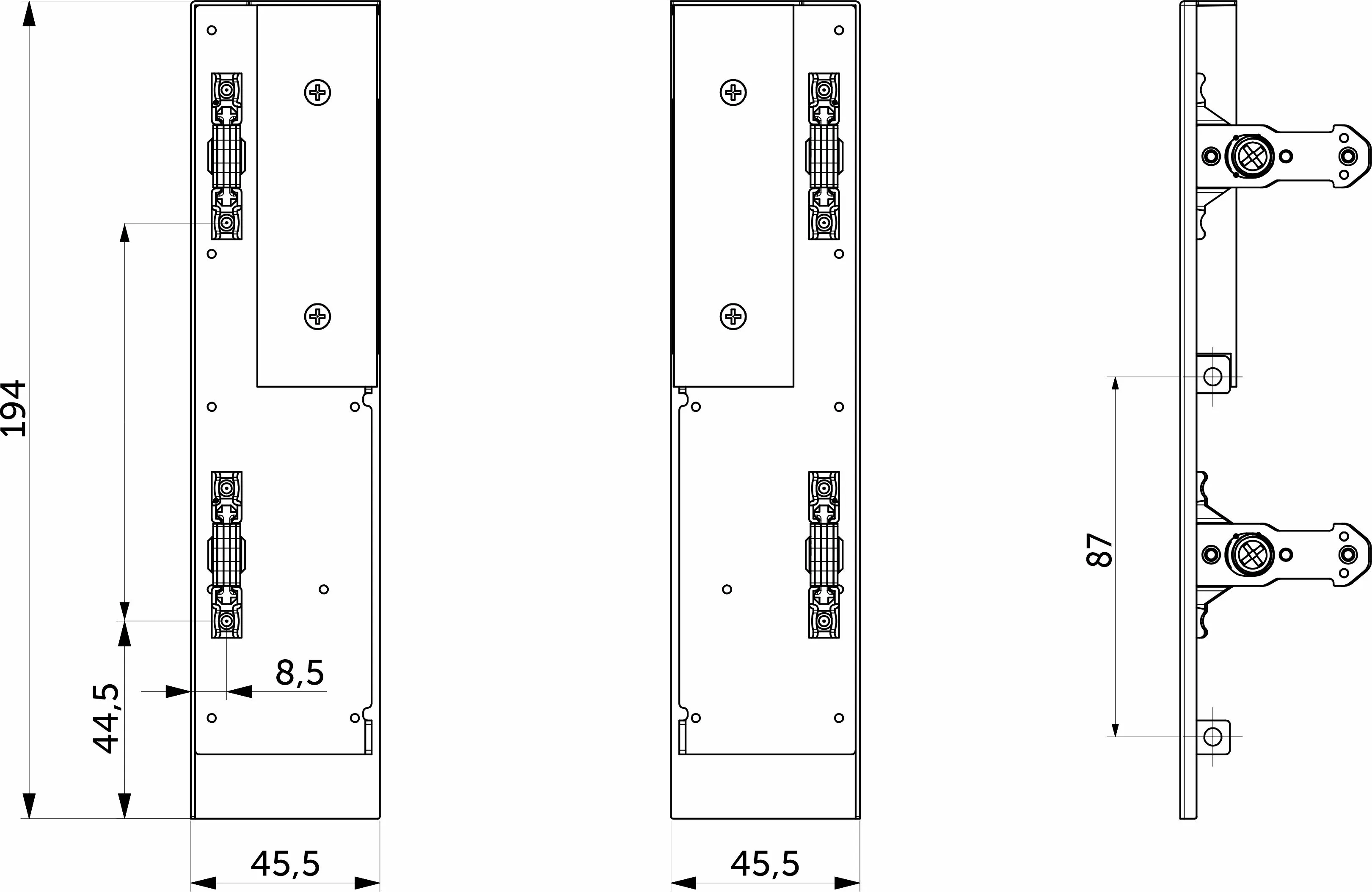 Держатели передней стенки с рейлингом на фасаде предназначены для надёжной фиксации передней стенки внутреннего выдвижного мебельного ящика высотой 167 мм с минимальной высотой проёма 193 мм.