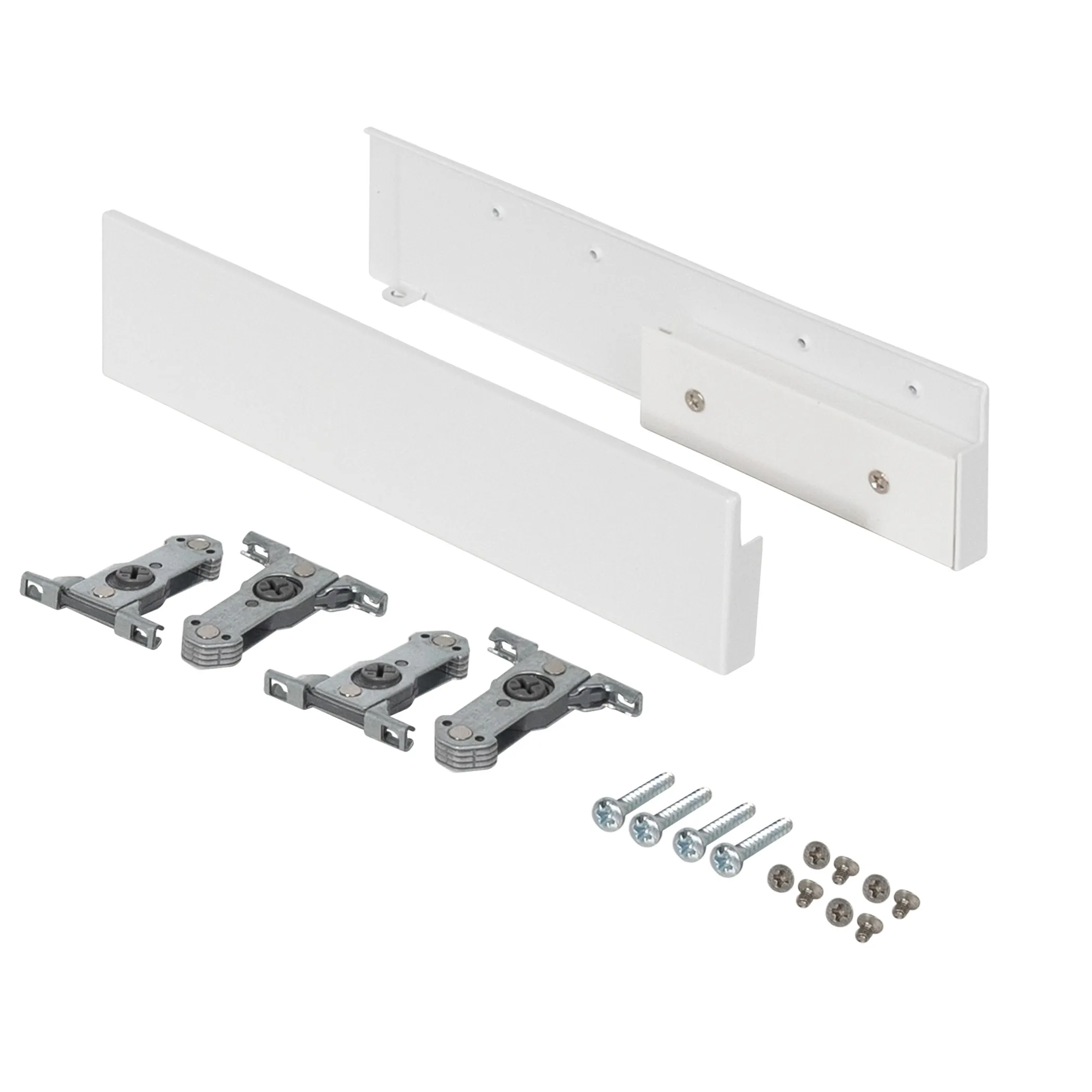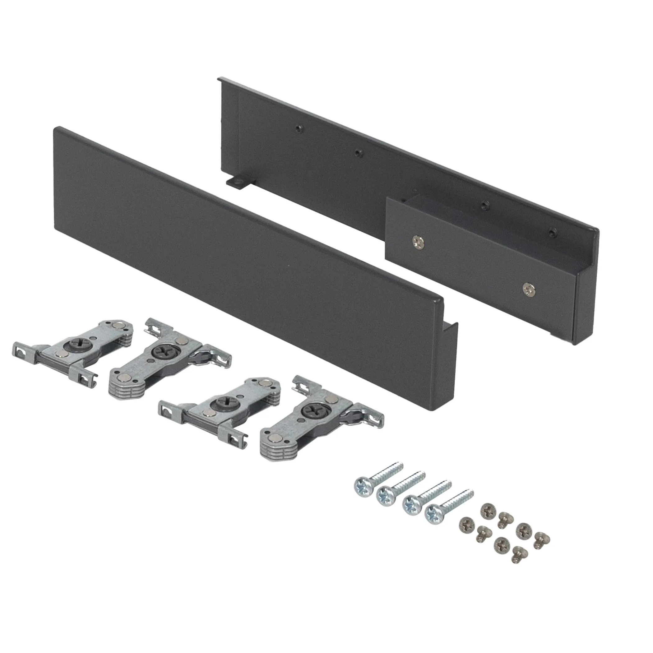 Держатели передней стенки с рейлингом на фасаде предназначены для надёжной фиксации передней стенки внутреннего выдвижного мебельного ящика высотой 199 мм с минимальной высотой проёма 228 мм.