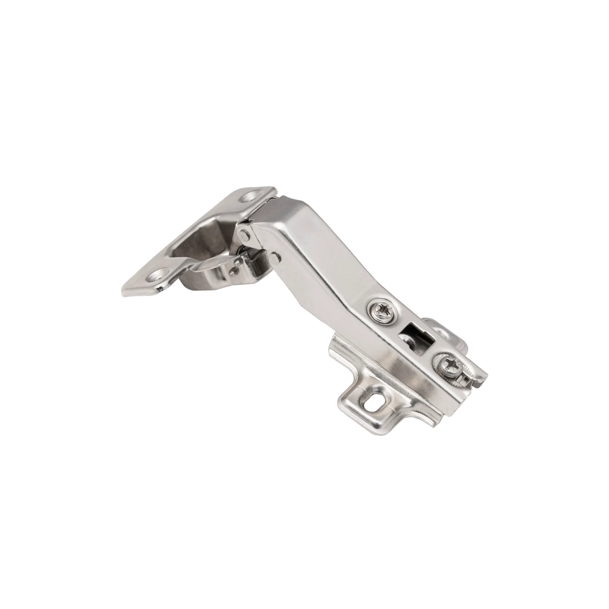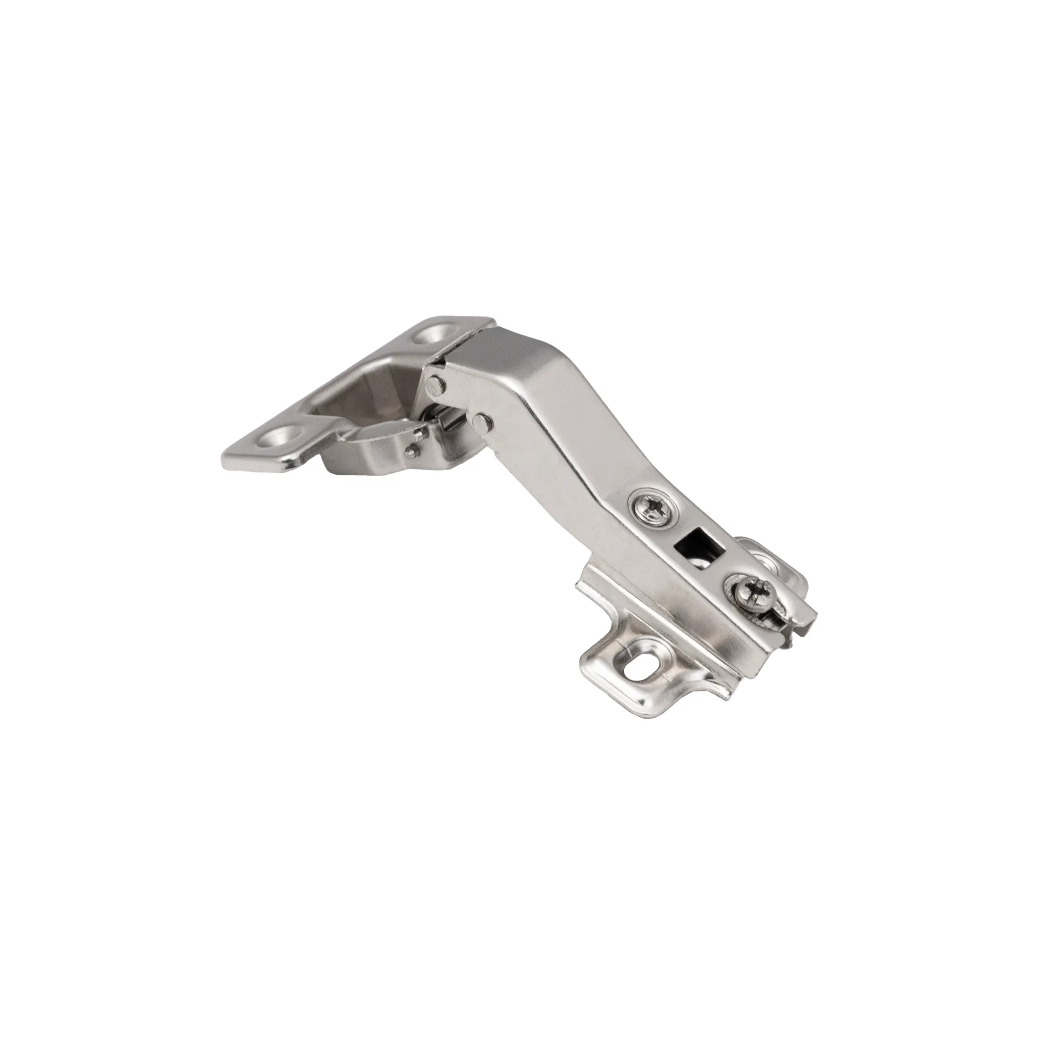 Петля 45 градусов угловая самозакрывающаяся с планкой - механизм для открывания фасада под определенным углом (негативным), в соответствии с конфигурацией мебельного изделия. Имеет доводчик и систему надвижного монтажа slide on, с чашкой 35 мм. Межцентровое расстояние в чашке 48 мм. Петля изготовлена из высокопрочной холоднокатаной стали. Угол открывания 95 градусов. Устанавливается преимущественно под скошенные фасады угловых ящиков.