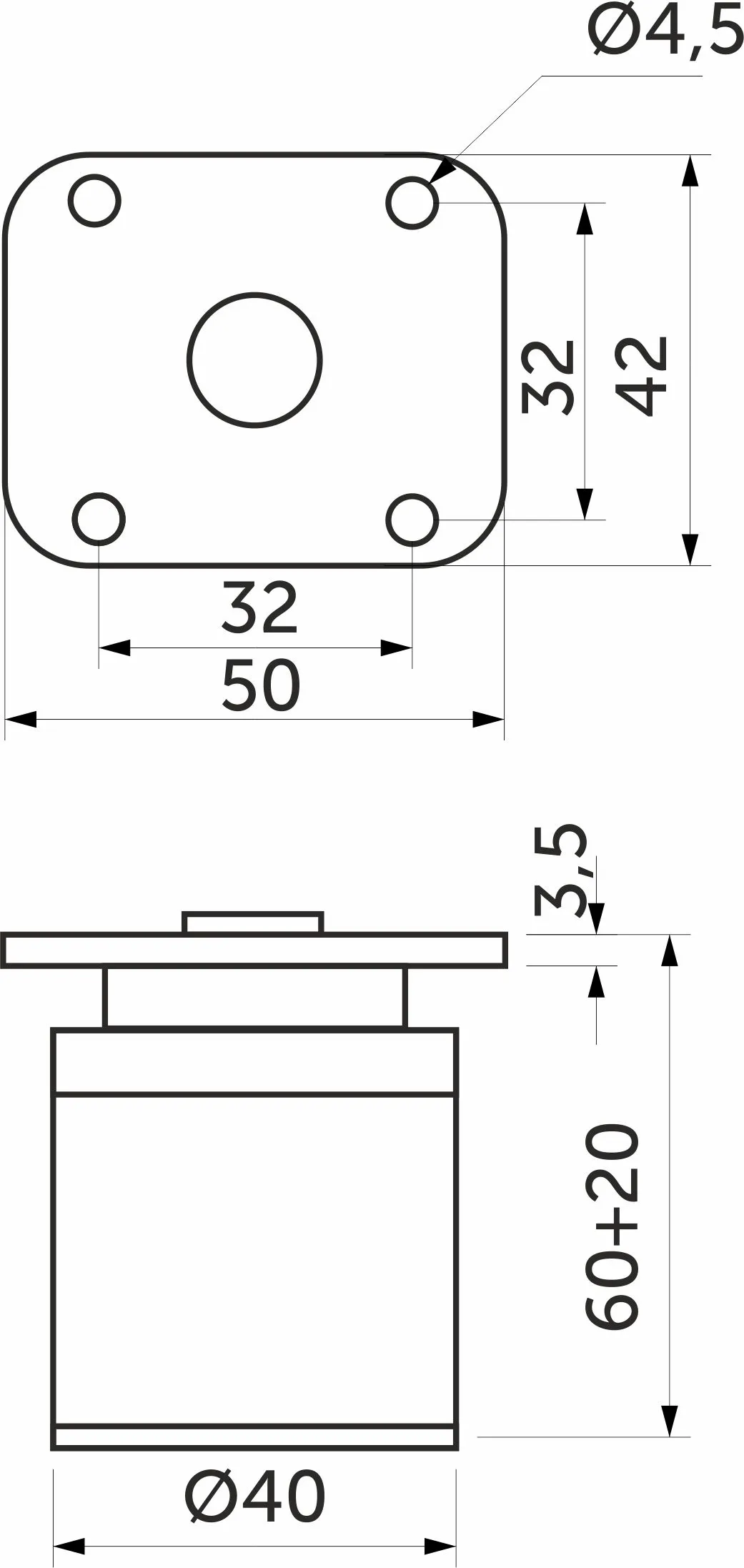Высота опоры 60мм + 20мм.