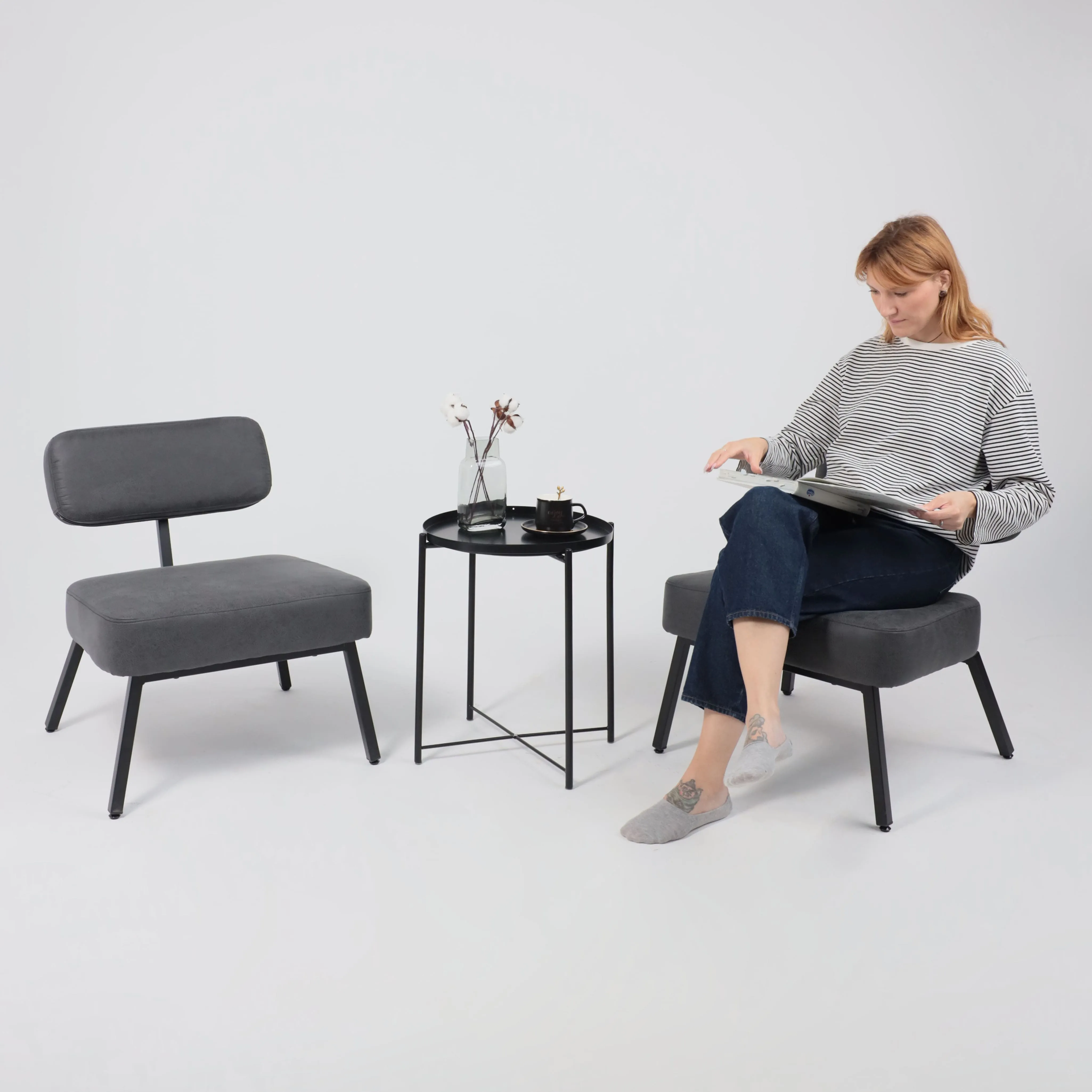 Кресло GRANDE, поворотное, серая ткань Linen Fabric-11/черный
