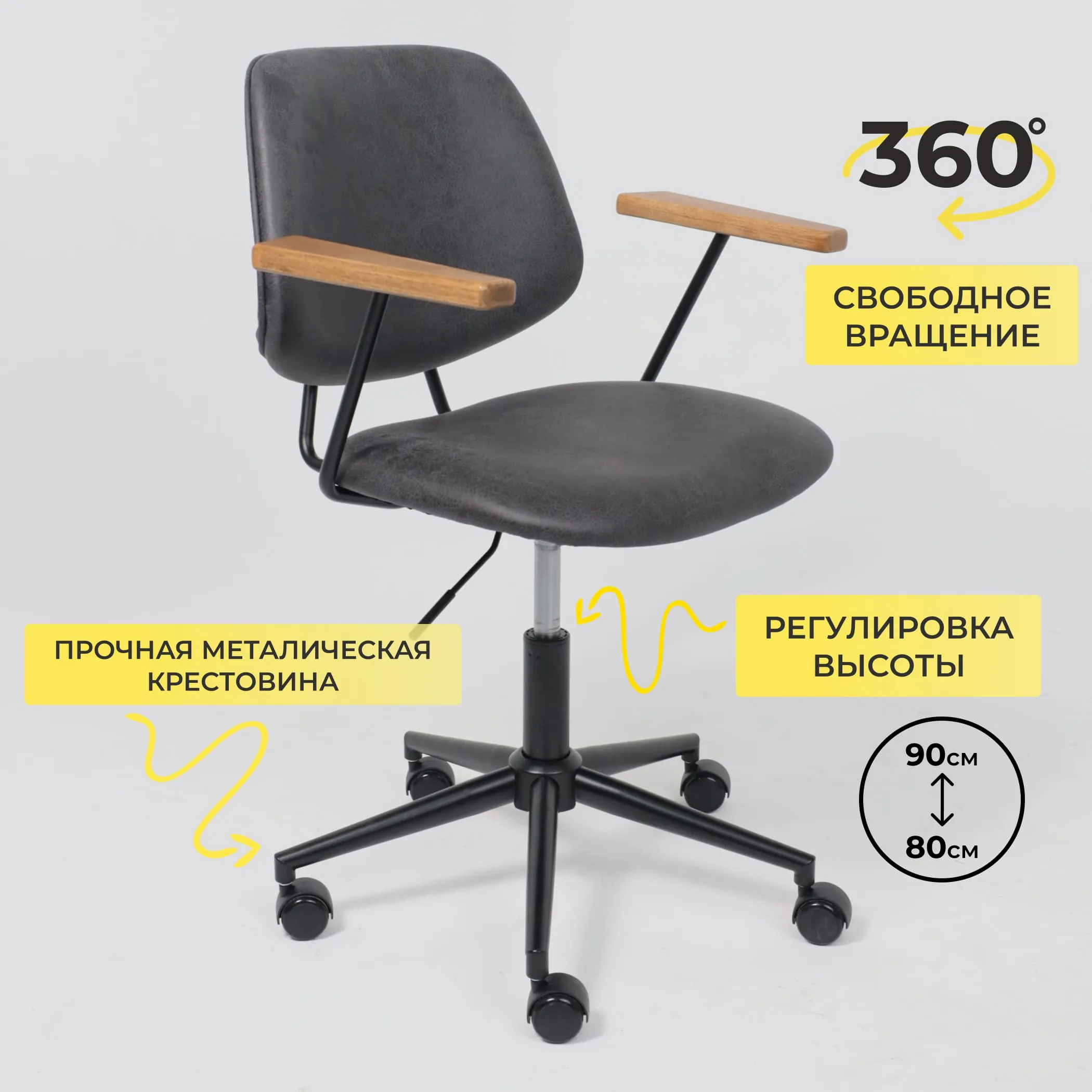 Кресло рабочее, поворотное ARTUR, (серый+черный)