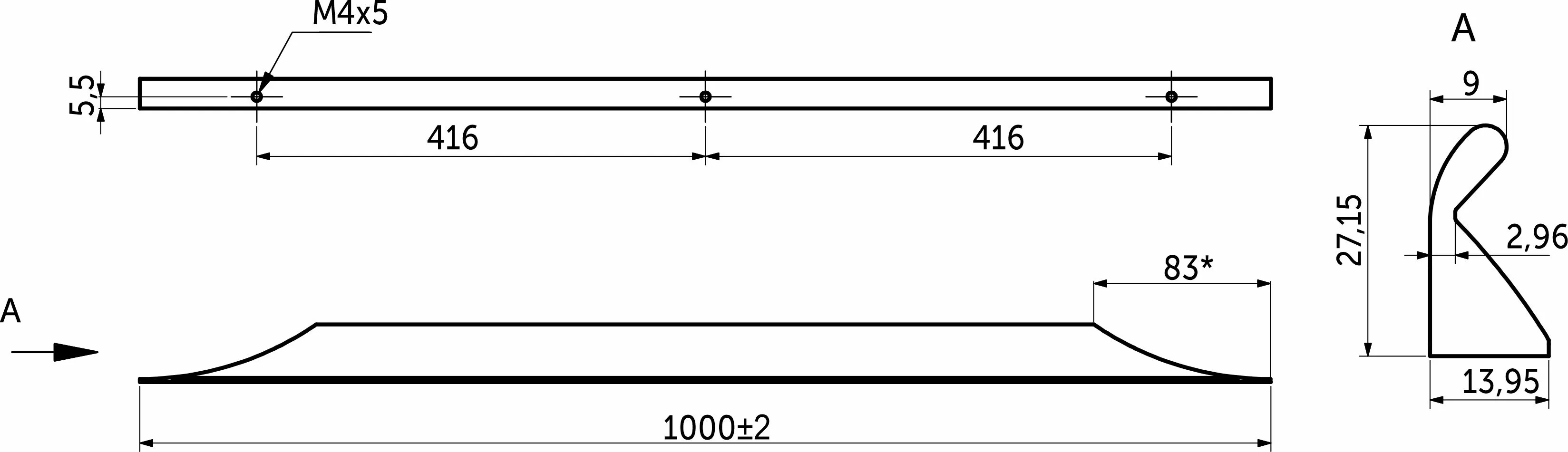 Размер 832мм под сверление, общая длина 1000мм.