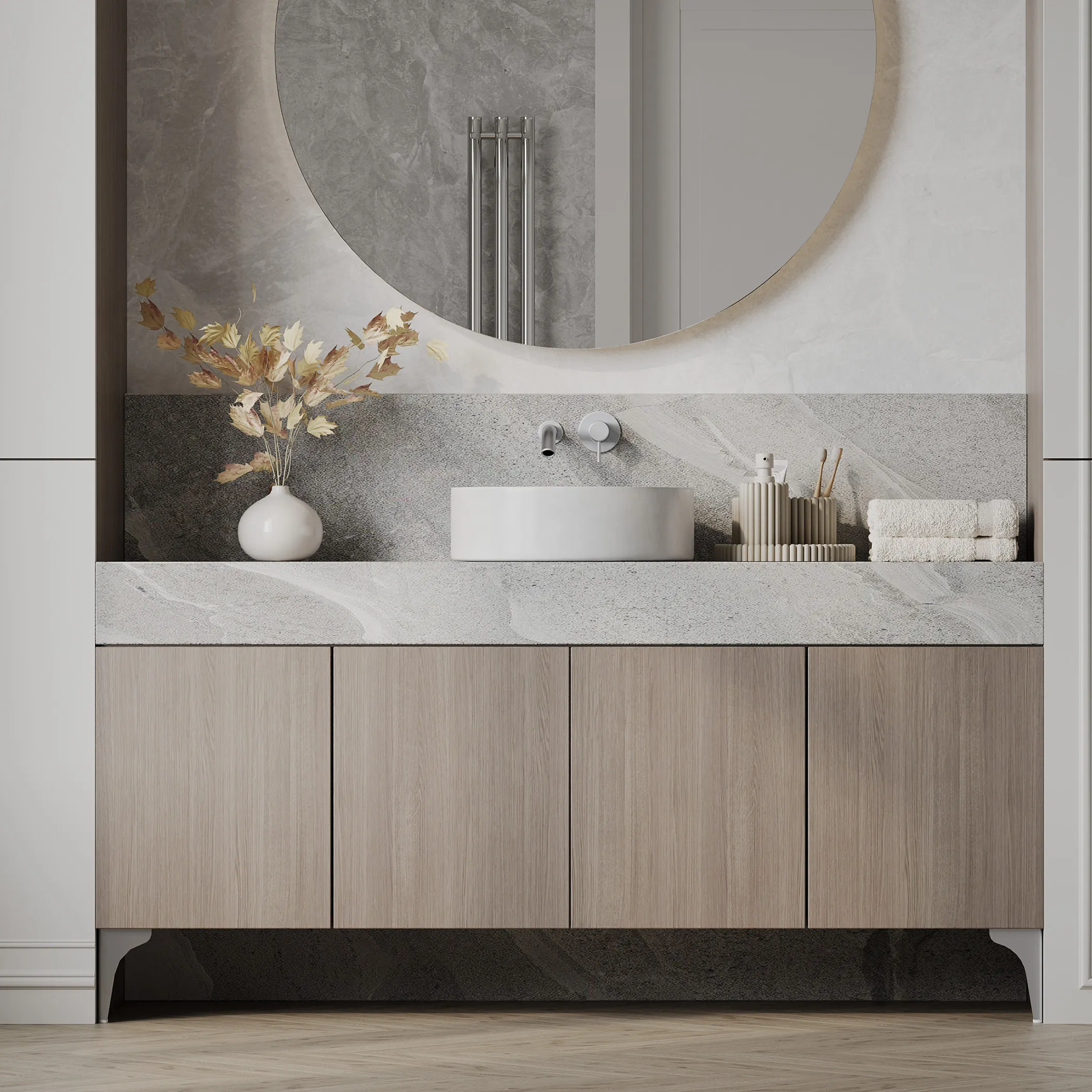 Угловая опора, которая объединила строгость геометрии и плавность линий, превращая простую деталь в выразительный акцент интерьера.