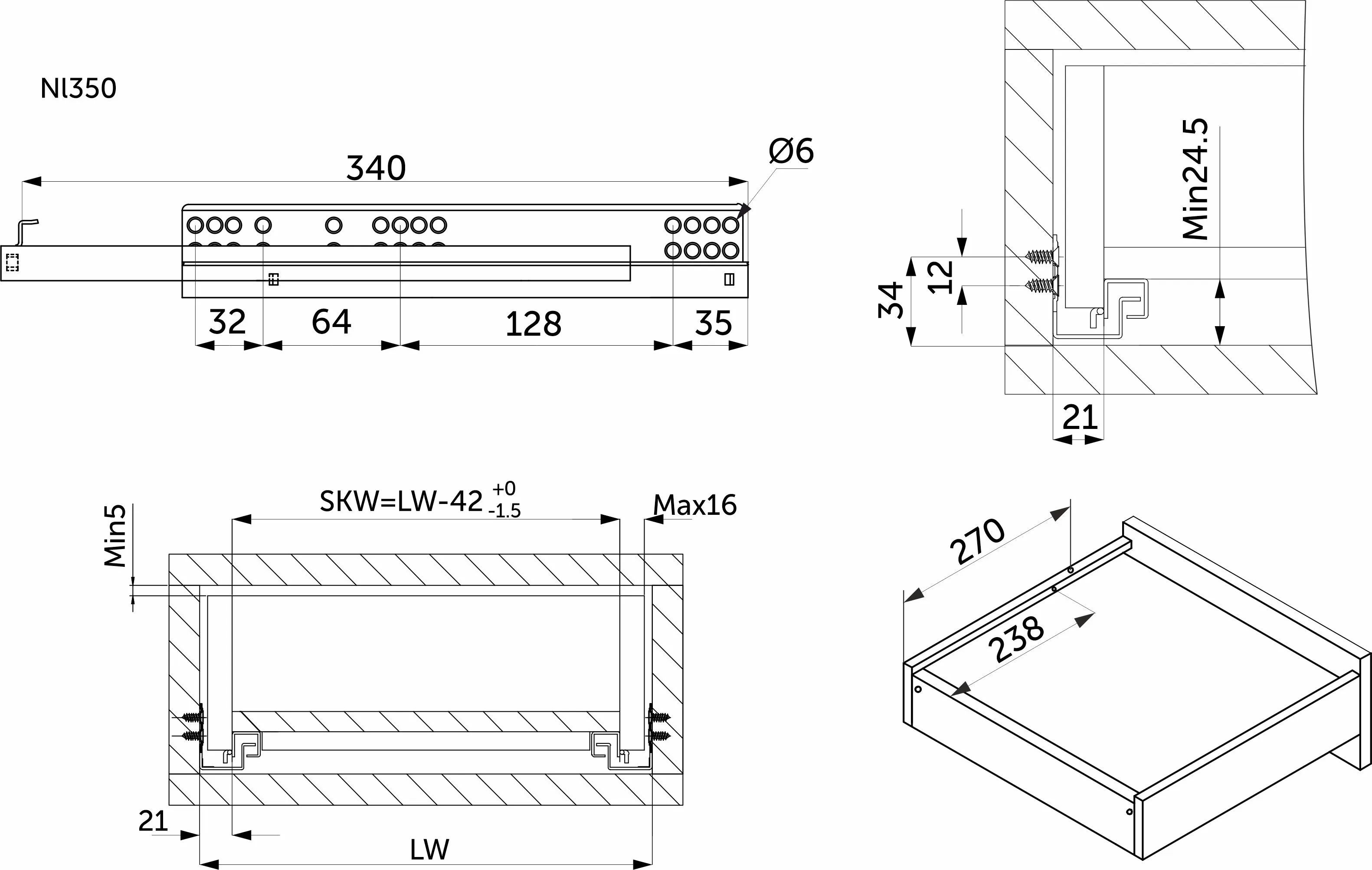 | Длина направляющей (L, мм) | 350 |