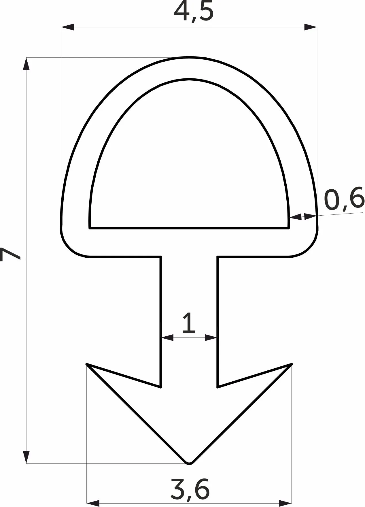 Уплотнитель для ручки-профиль в верхнюю базу, (4 пог. м = 1 упак) AKS