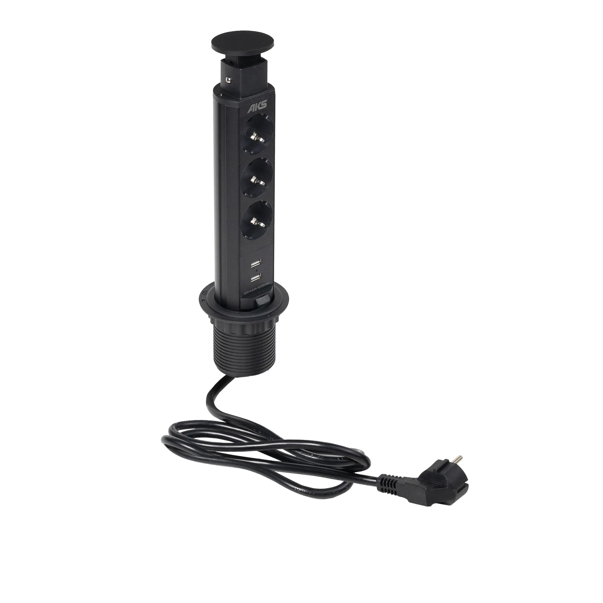 Выдвижной удлинитель Vulcan USB, 60 мм, 3 розетки 2xUSB A, крышка пластик, черный, AKS