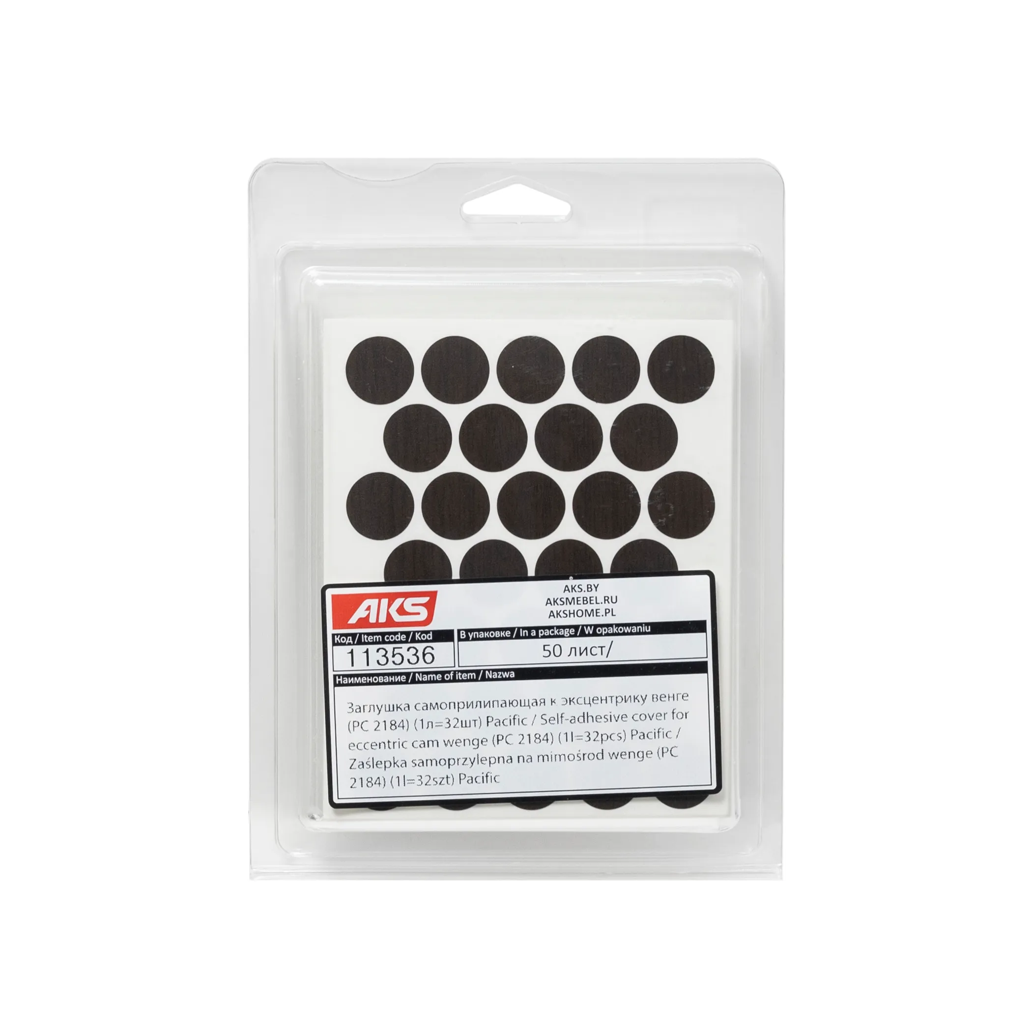 Заглушка самоприлипающая к эксцентрику венге (PC 2184) (1л=32шт) Pacific