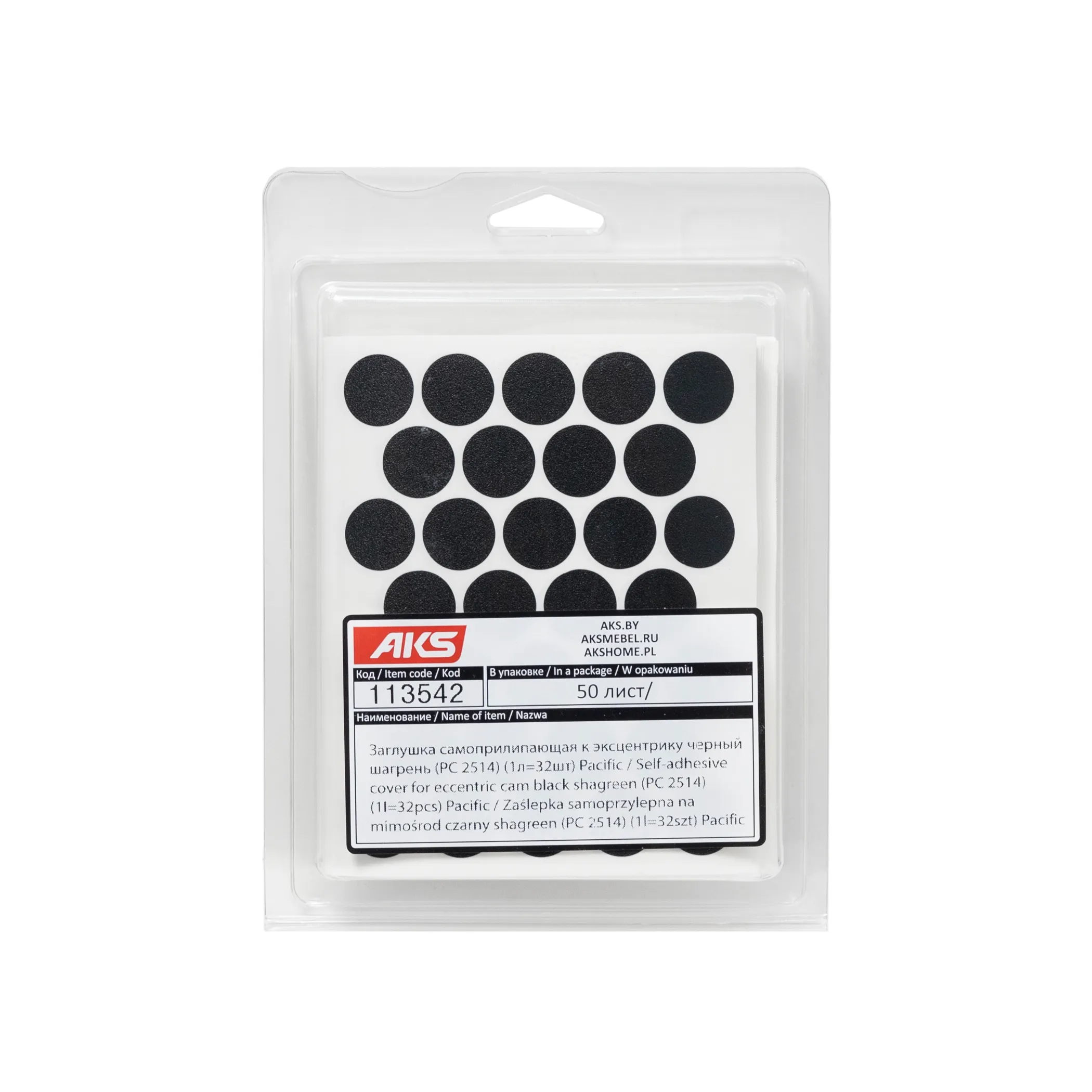 Заглушка самоприлипающая к эксцентрику черный шагрень (PC 2514) (1л=32шт) Pacific