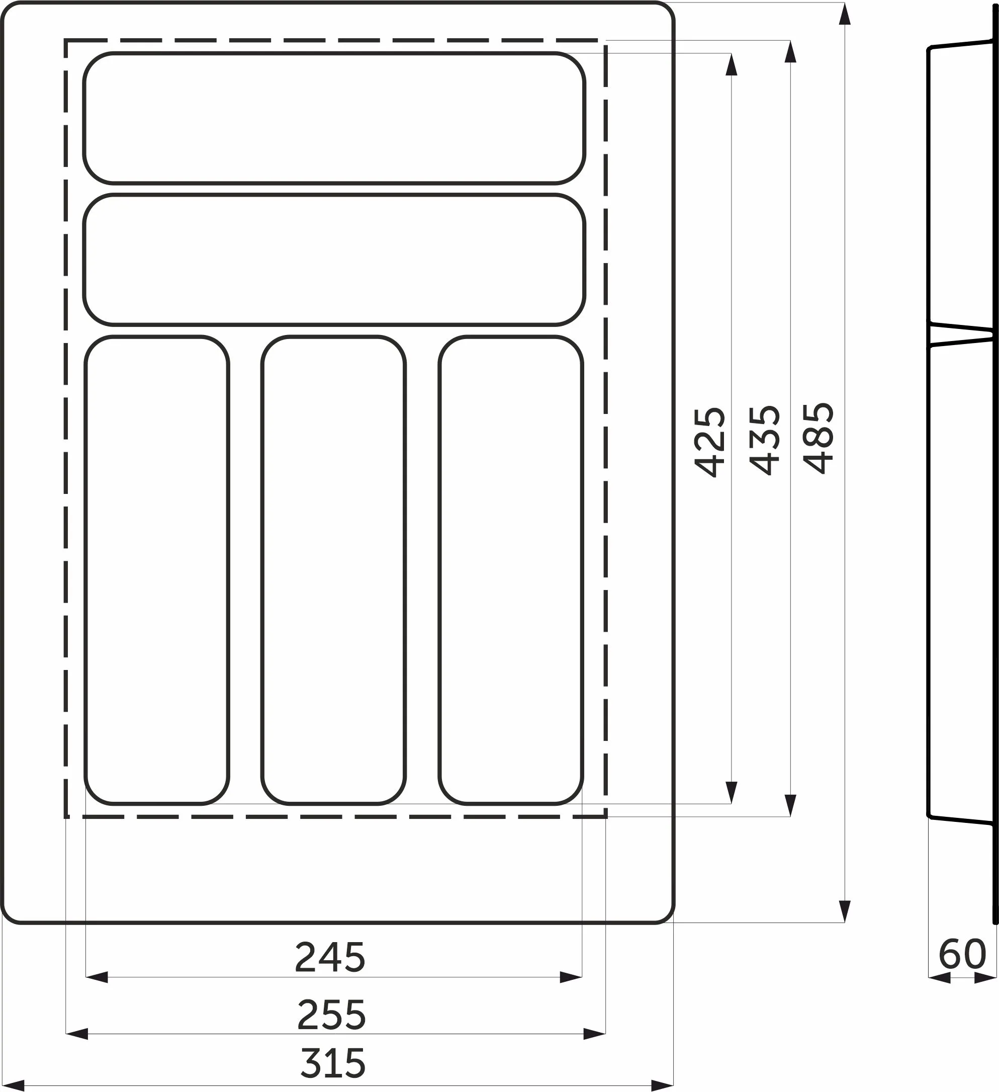 Вкладыш 60/550 шуфлядный металлический Organizer нержавеющая сталь (523*564*65) AKS