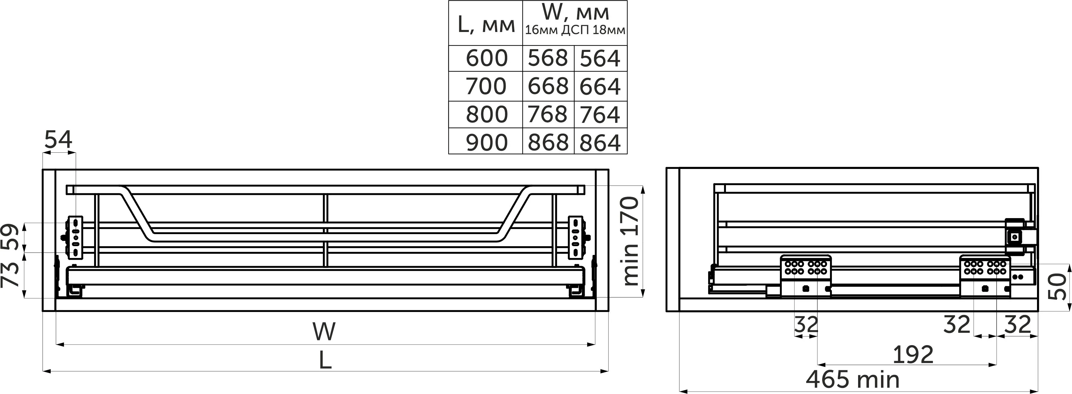 -съемное крепление к фасаду (возможна установка в ящик под выдвижной и распашной фасад),