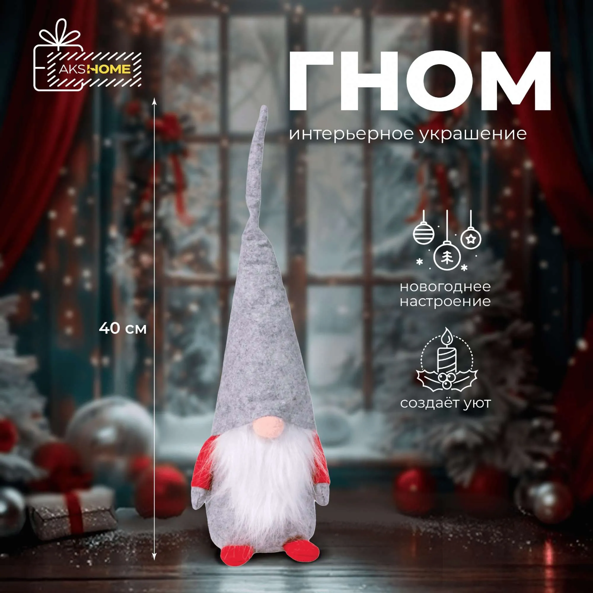Интерьерное украшение "Гном", 40см, серый (RY-127)