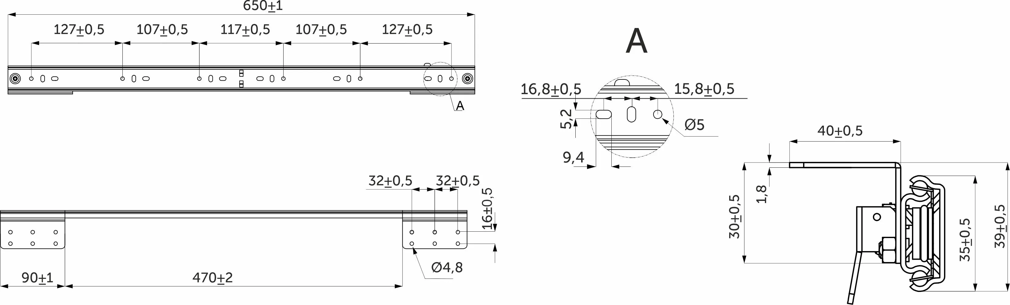 Механизм для раздвижных столов внутренний синхронный со стопором L-650 мм AKS