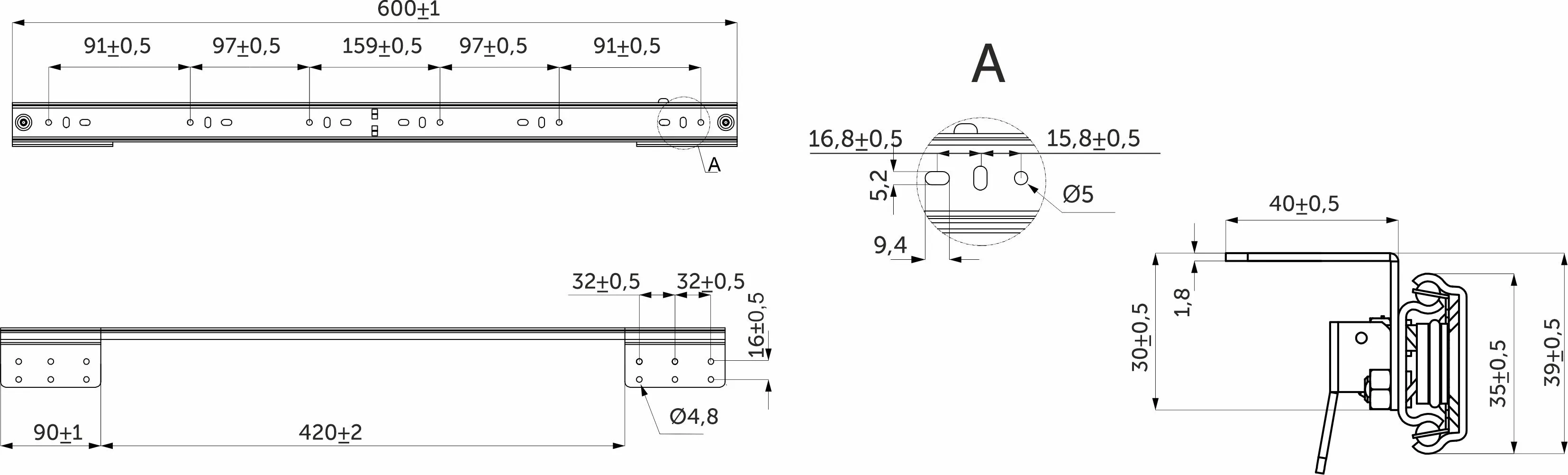 Механизм для раздвижных столов внутренний синхронный со стопором L-600 мм AKS