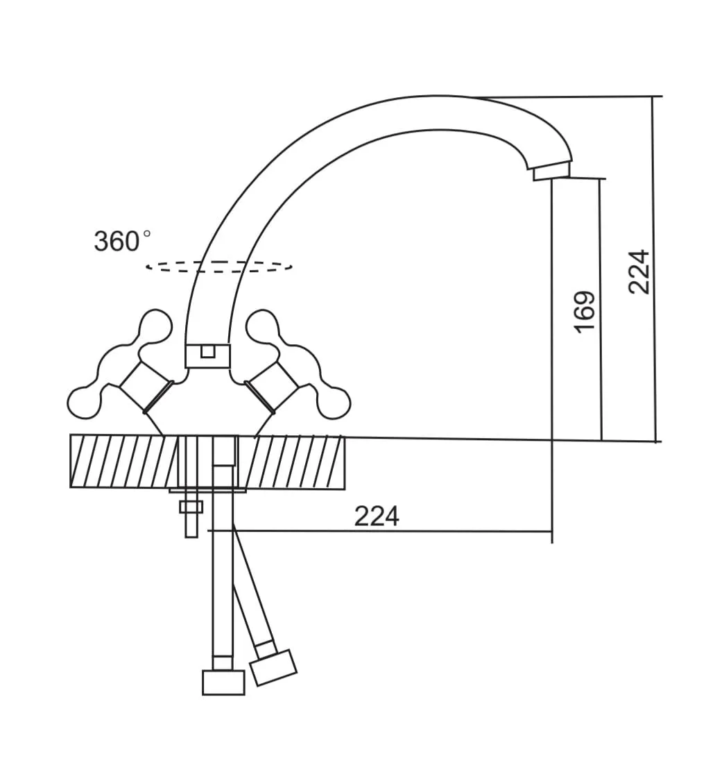 Материал корпуса: Латунь. Картридж керамический: 35 мм. Высота излива: 169 мм. Высота смесителя: 224 мм. Смесители идеально подходят под мойки торговых марок и .