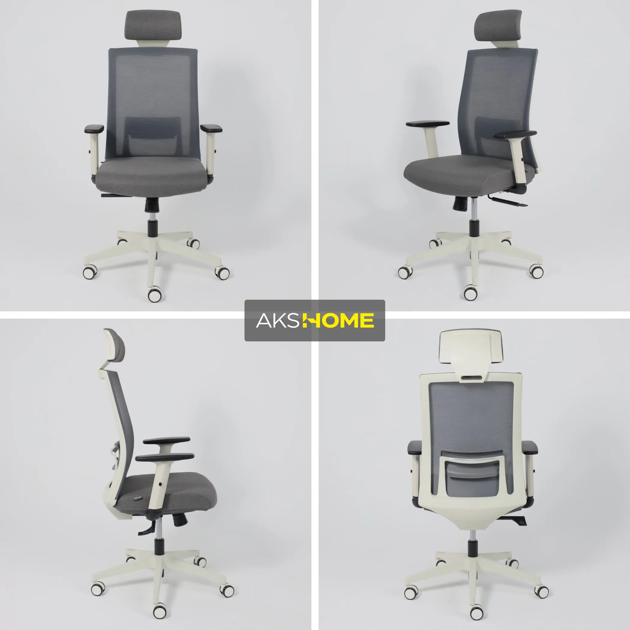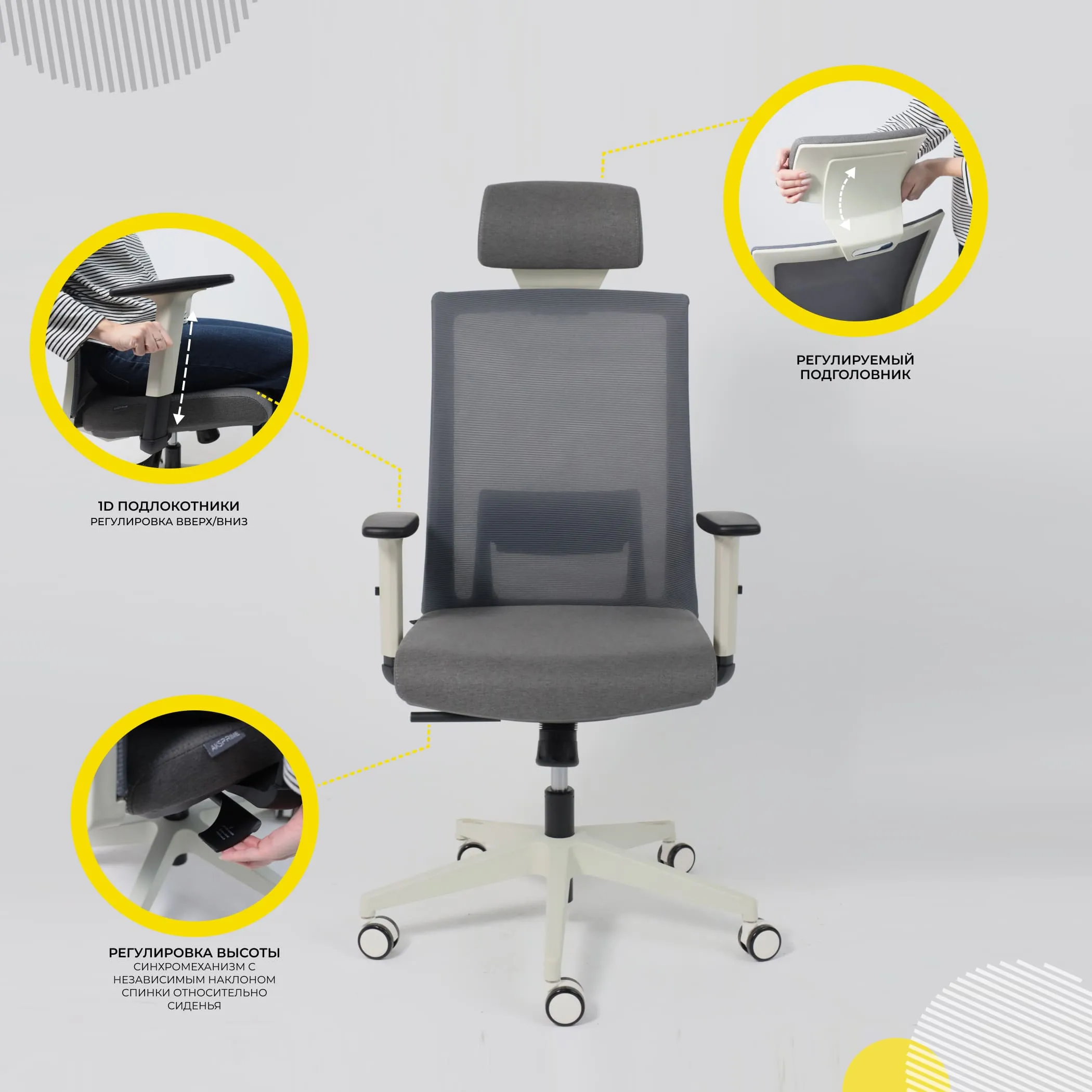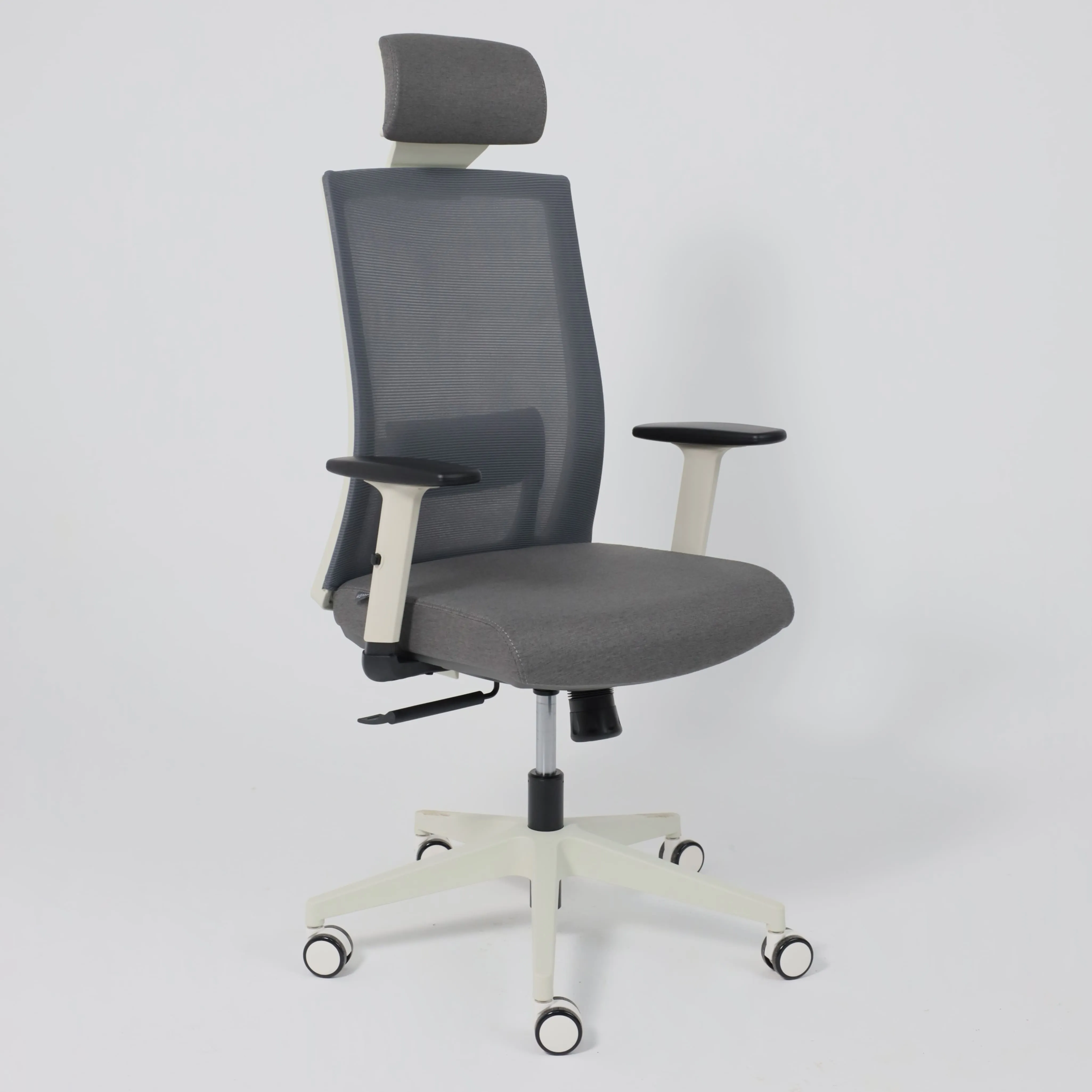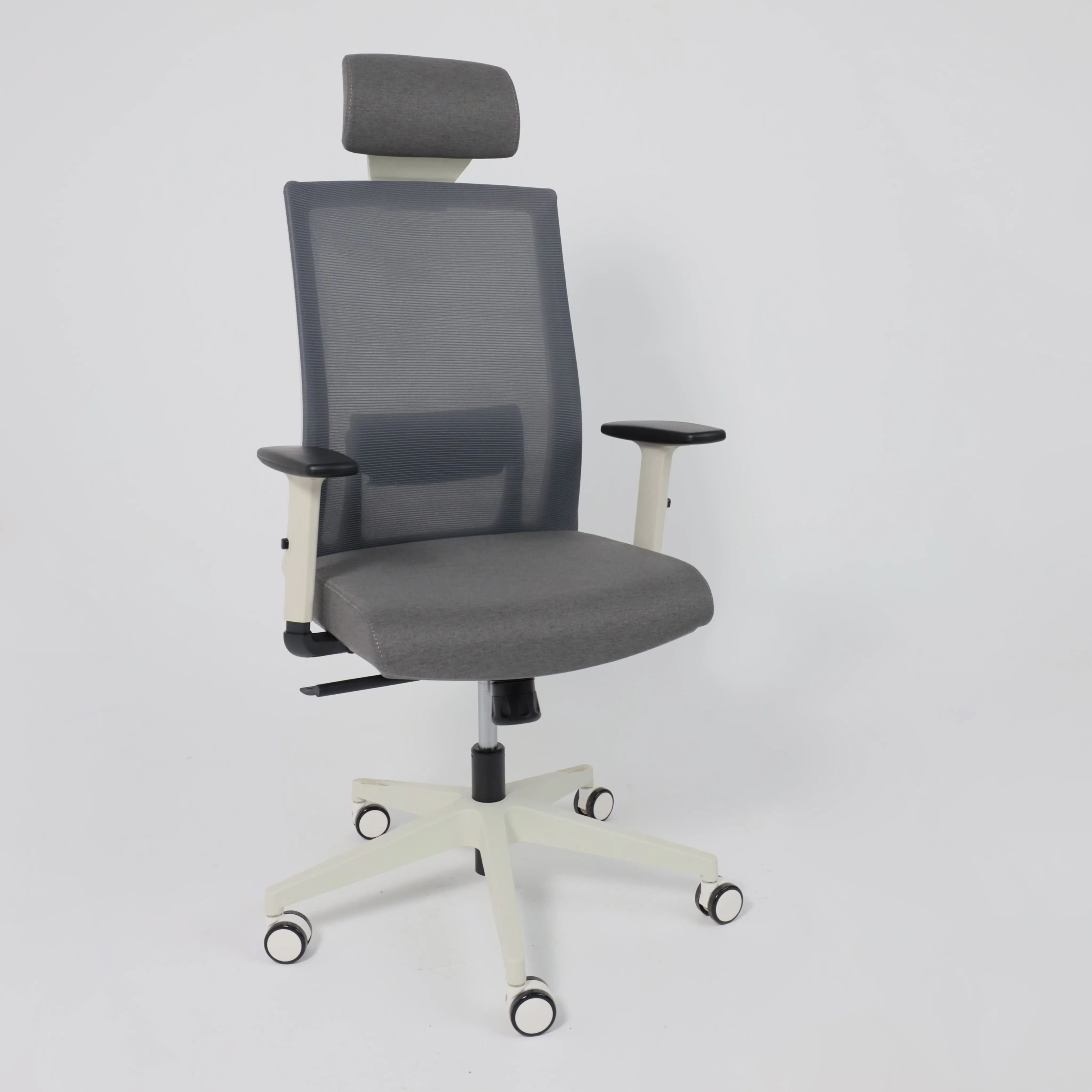 Кресло поворотное ARCUS, серая сетка+ткань/белый полиамид, коллекция AKSPRIME