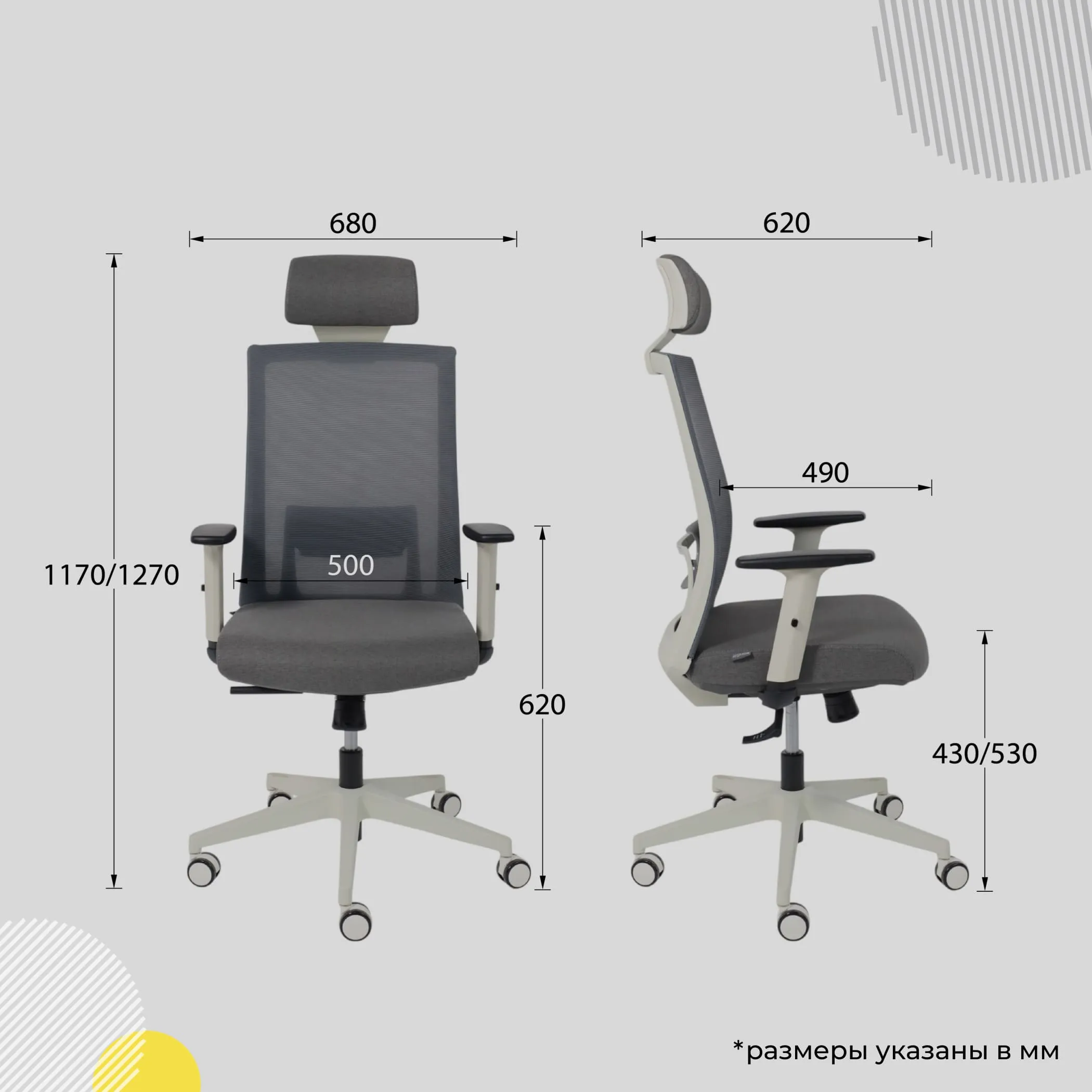 | Высота до подлокотника мин., мм | 620 |