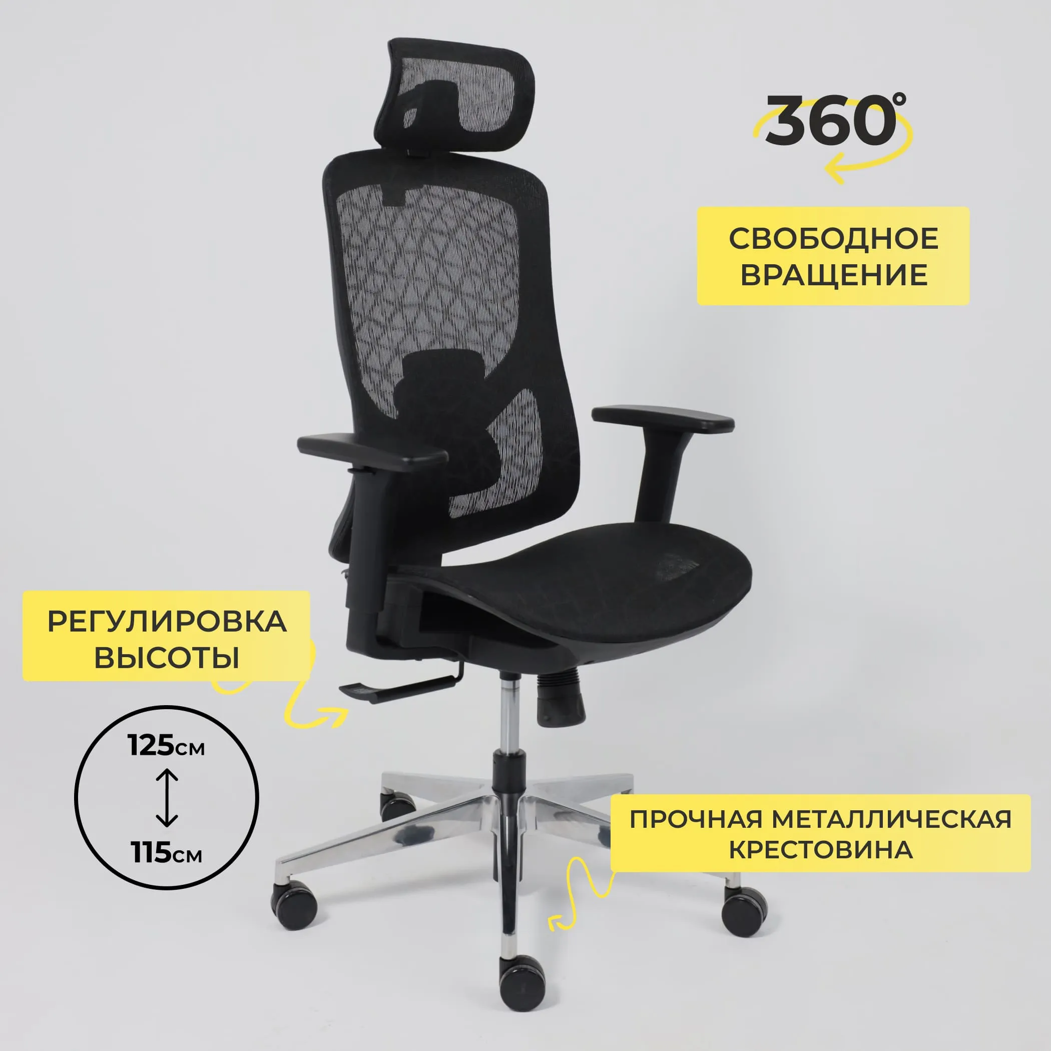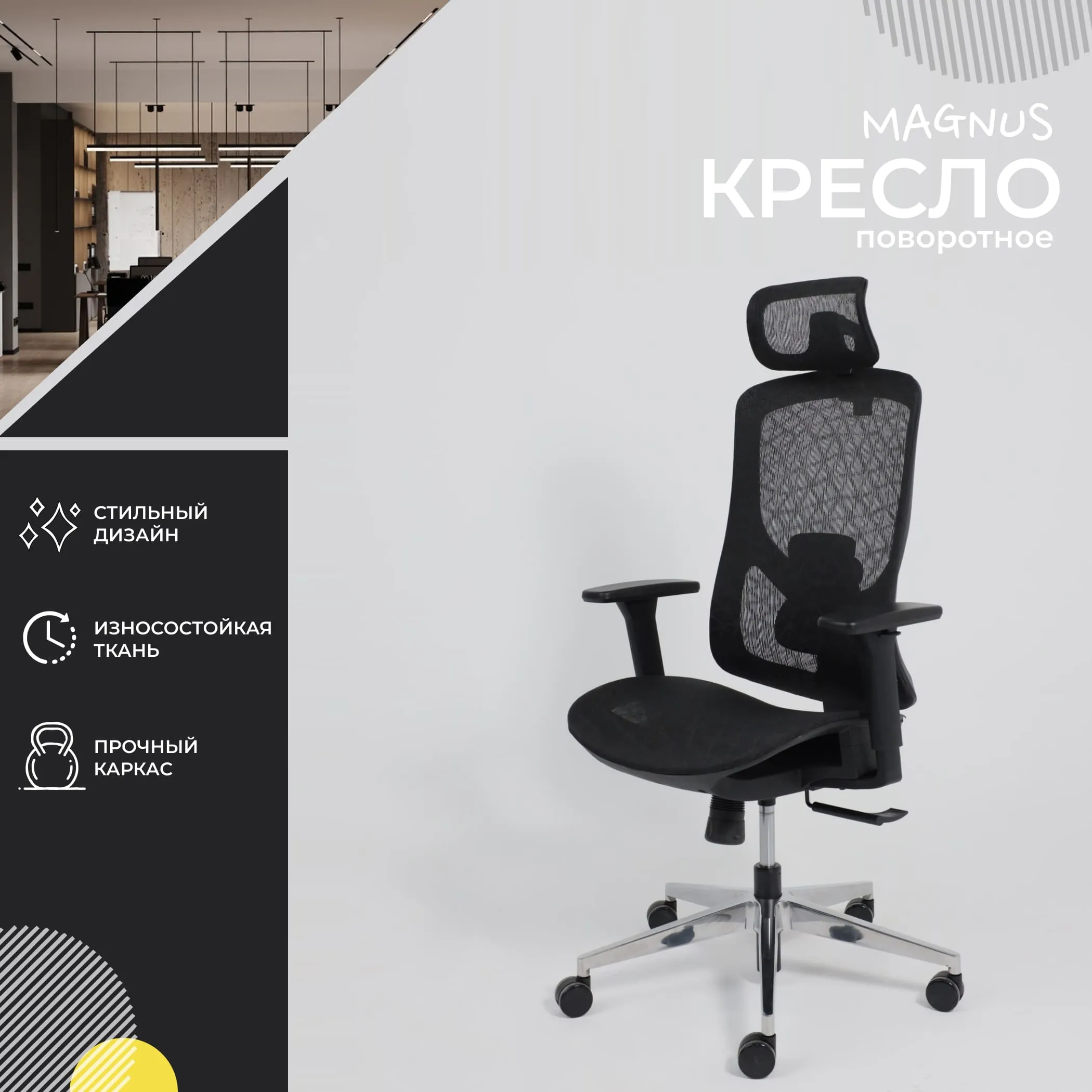 Кресло поворотное MAGNUS, черная сетка/алюминий, коллекция AKSPRIME