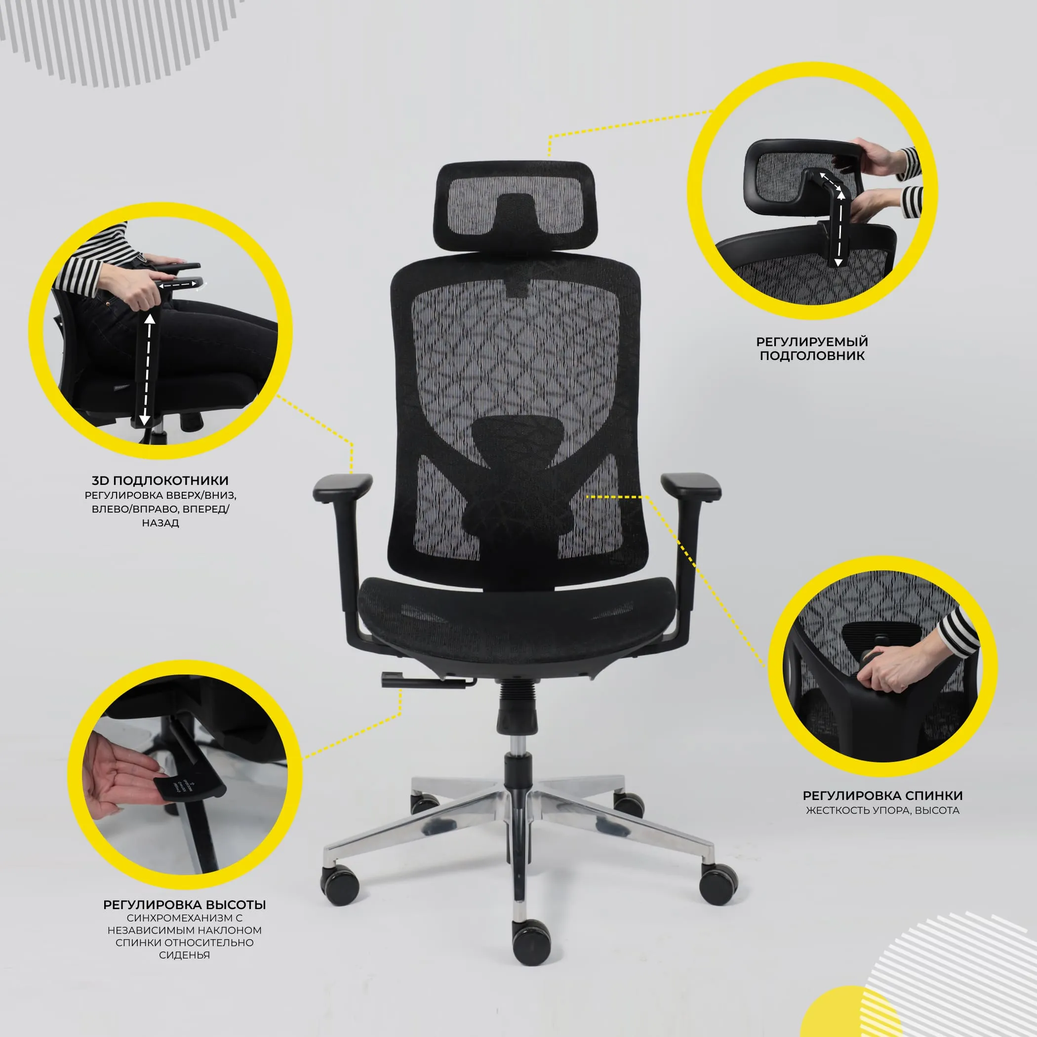 | Механизм регулировки | синхромеханизм с независимым наклоном спинки относительно сиденья |