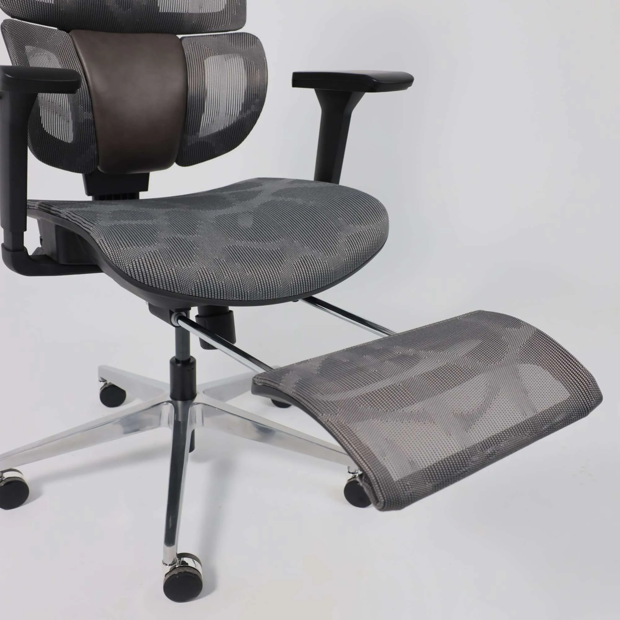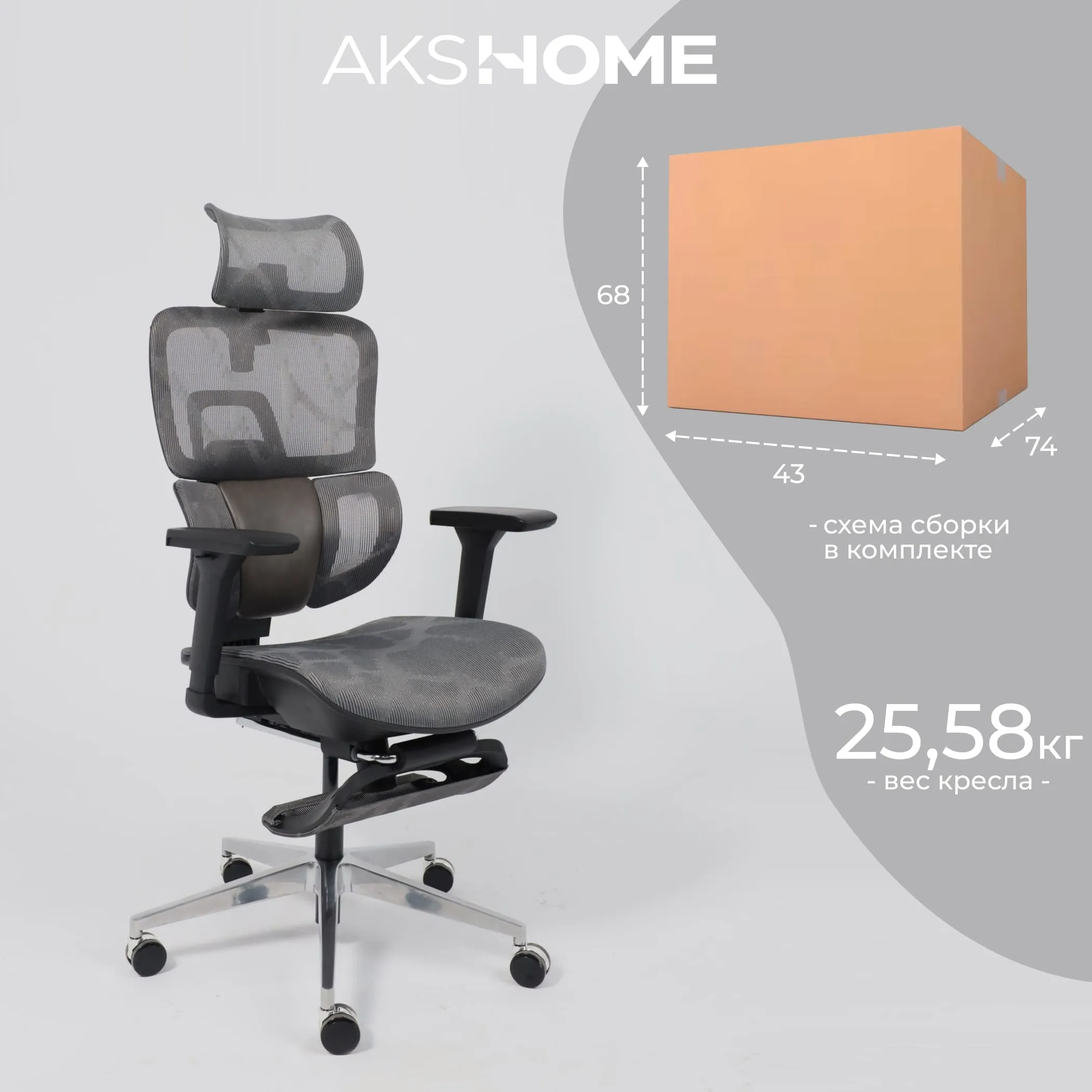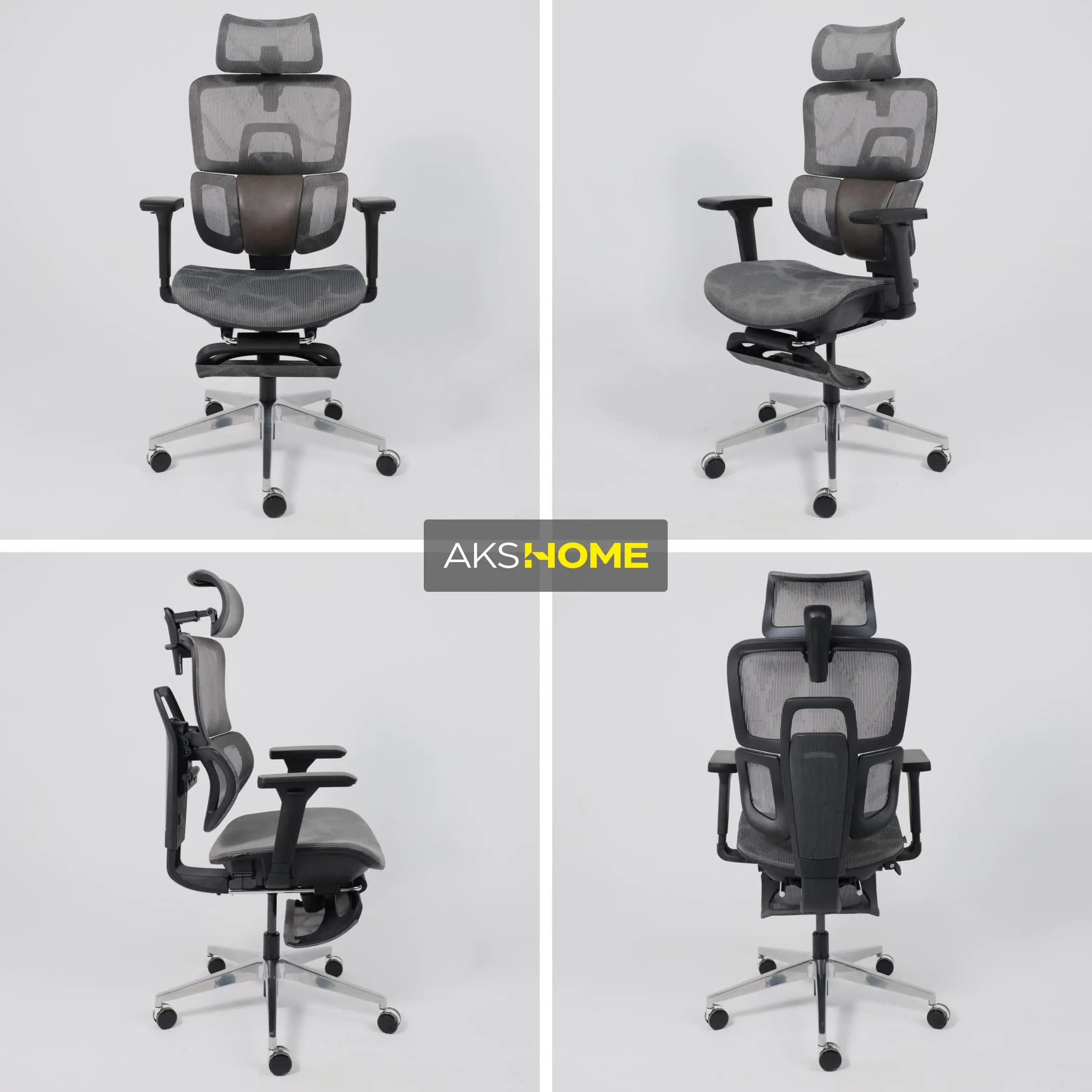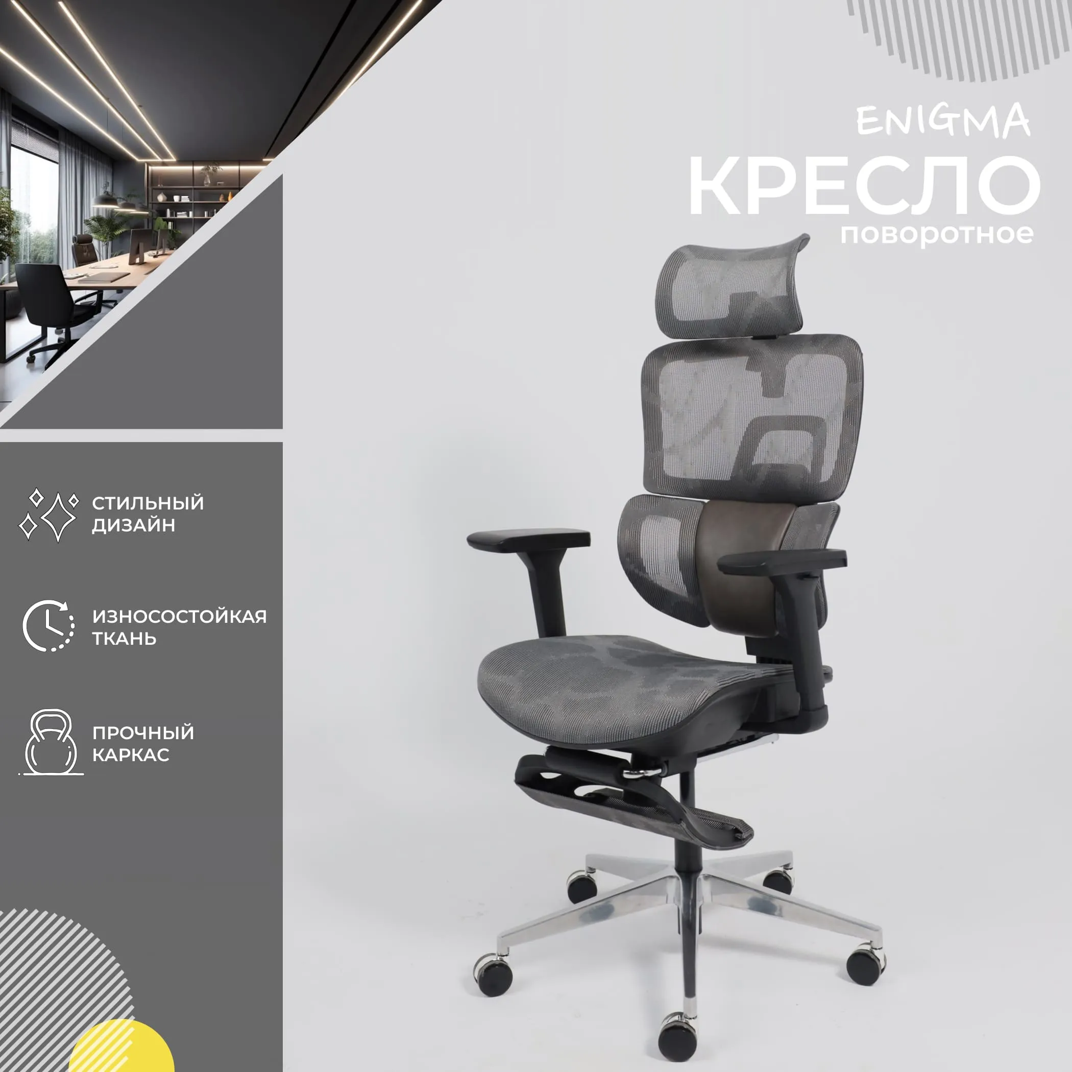 Кресло поворотное ENIGMA, серая сетка/алюминий (с подставкой для ног), коллекция AKSPRIME