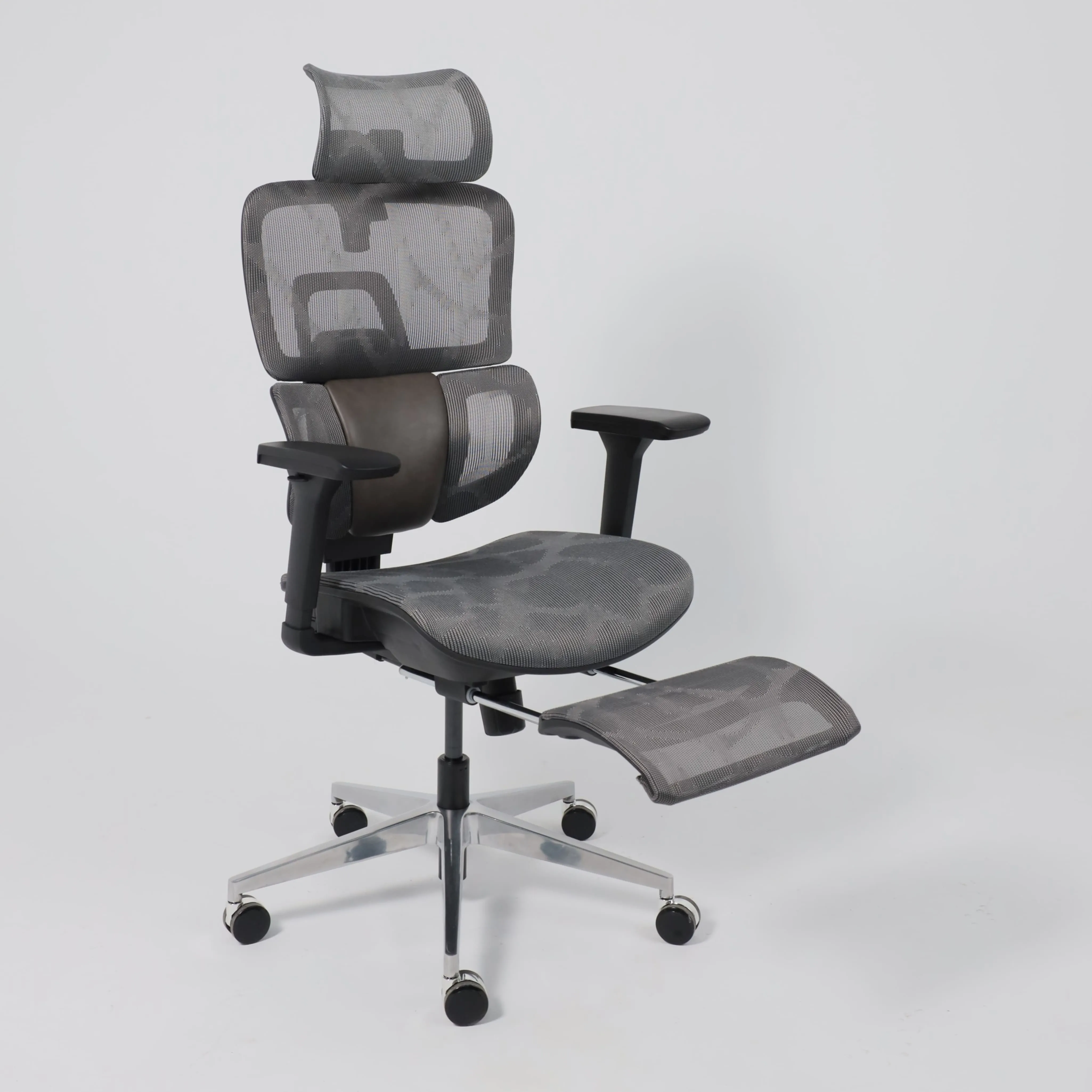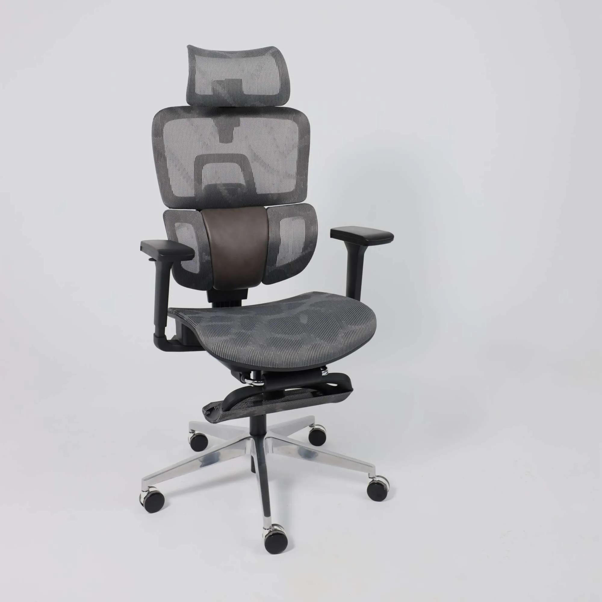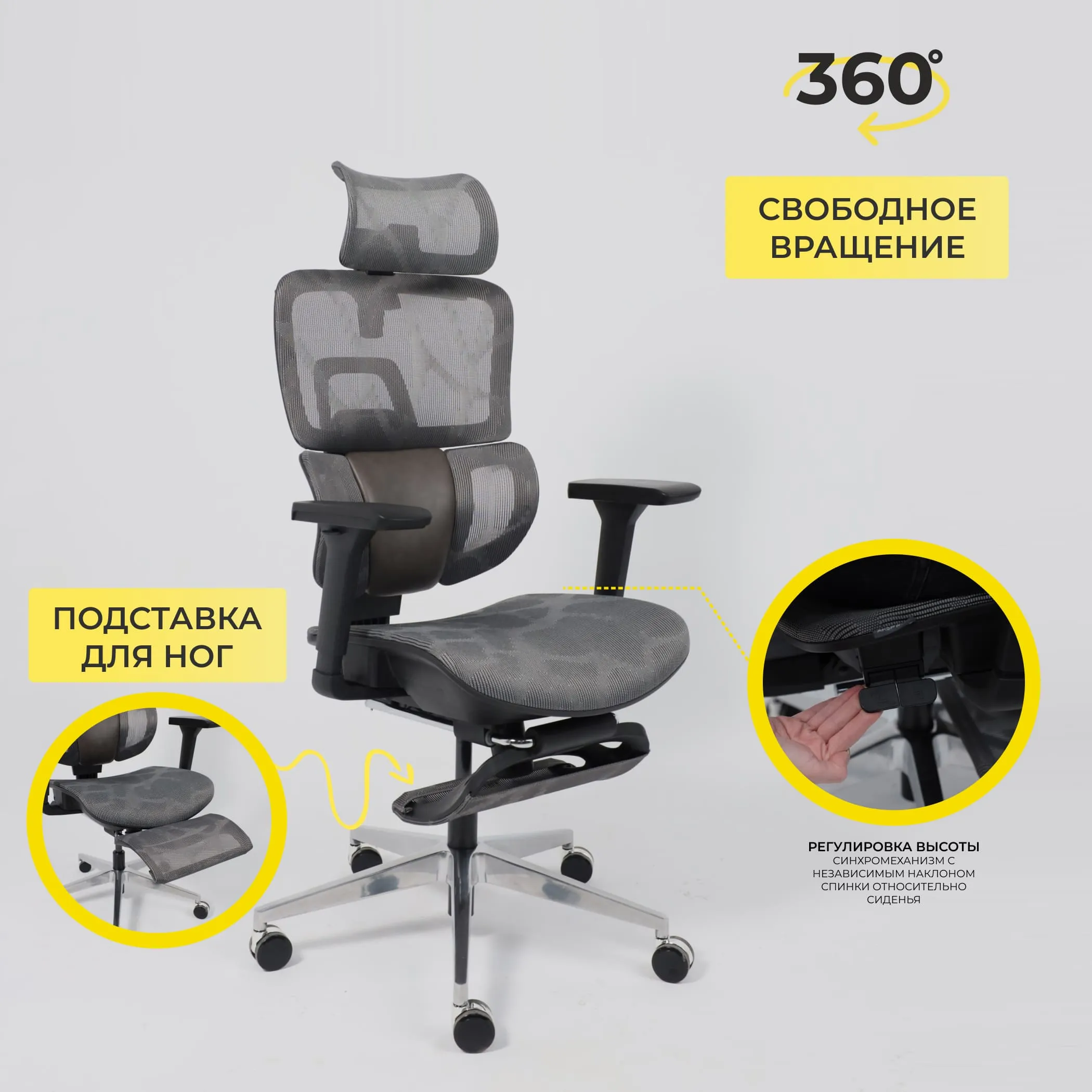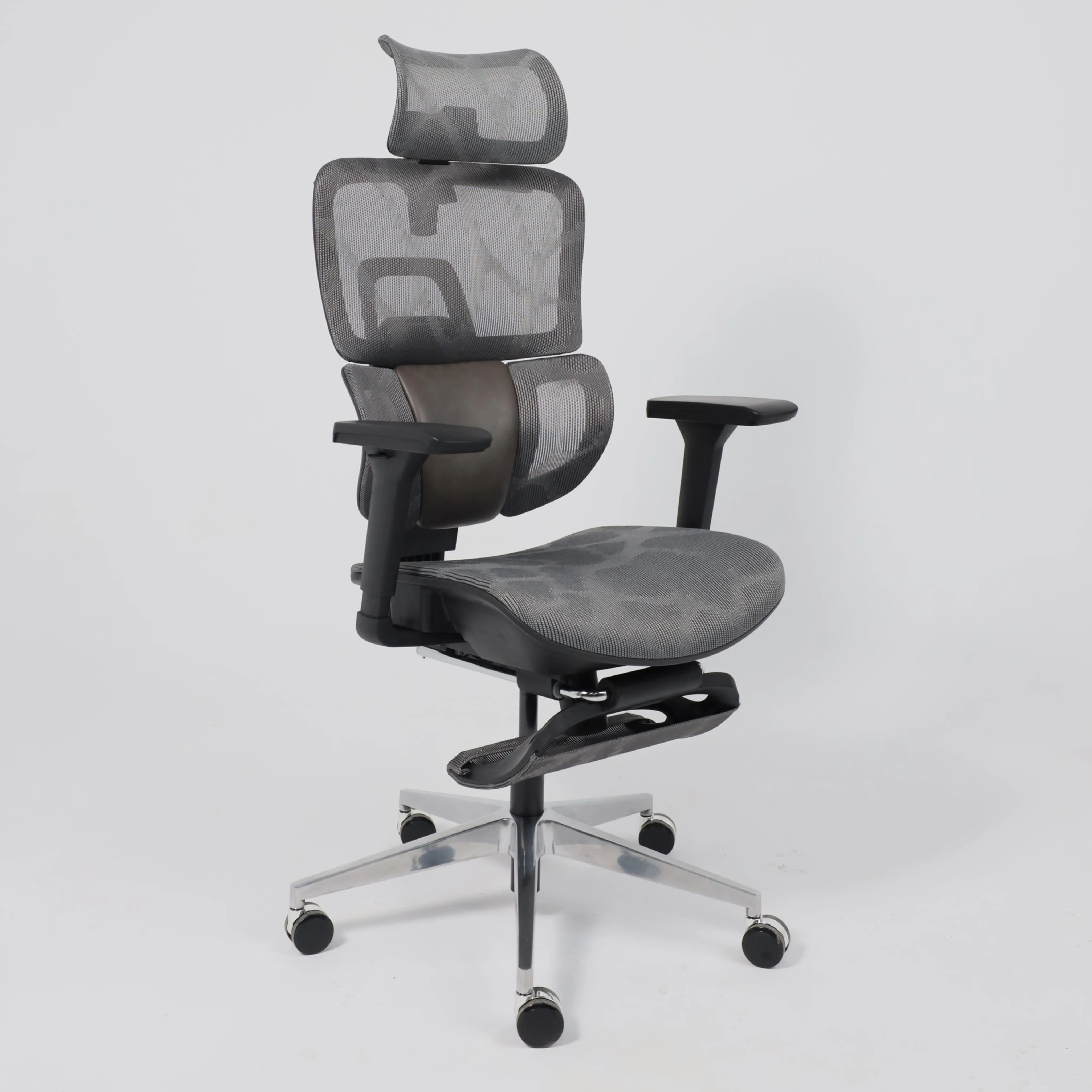 Кресло поворотное ENIGMA, серая сетка/алюминий (с подставкой для ног), коллекция AKSPRIME