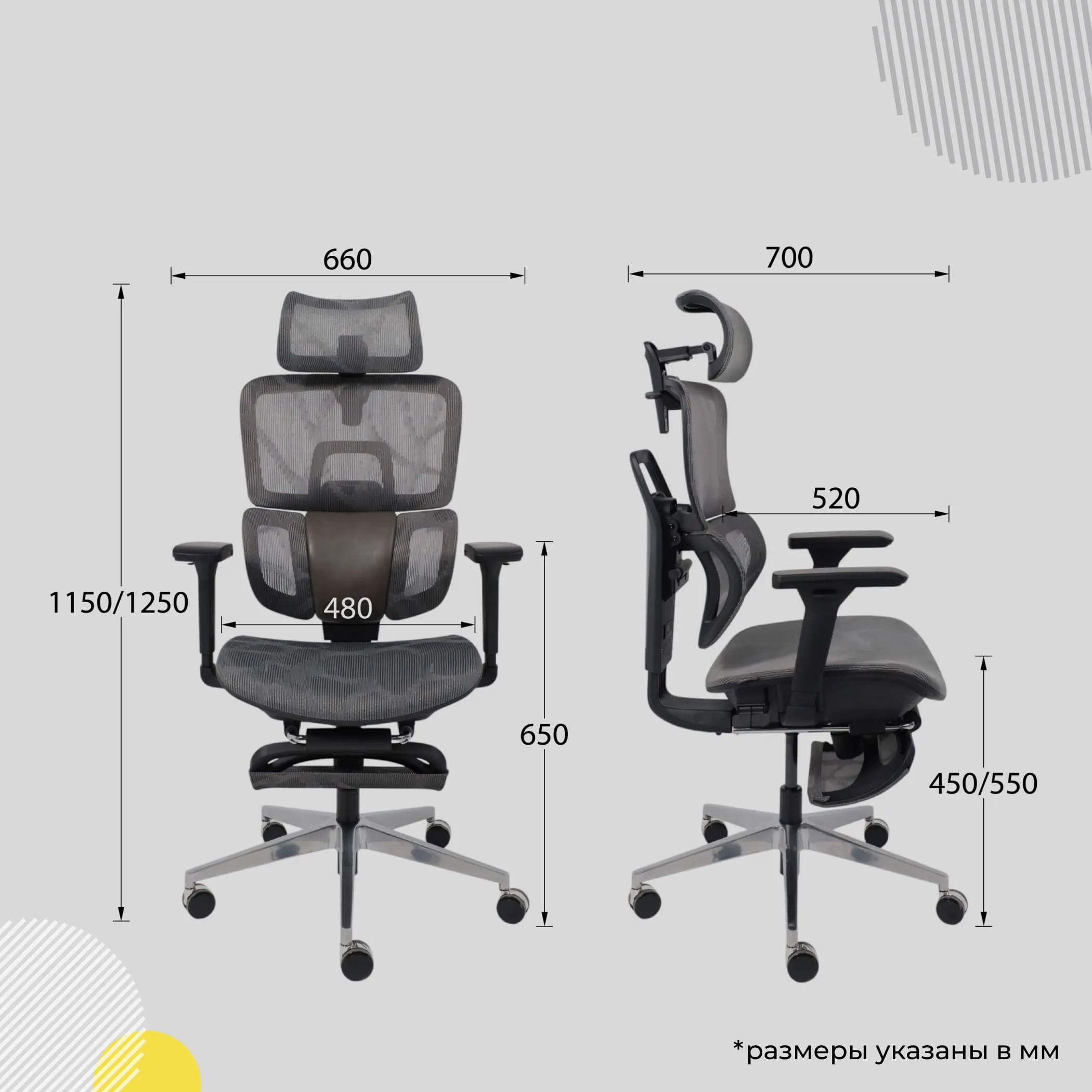 | Высота до подлокотника мин., мм | 650 |