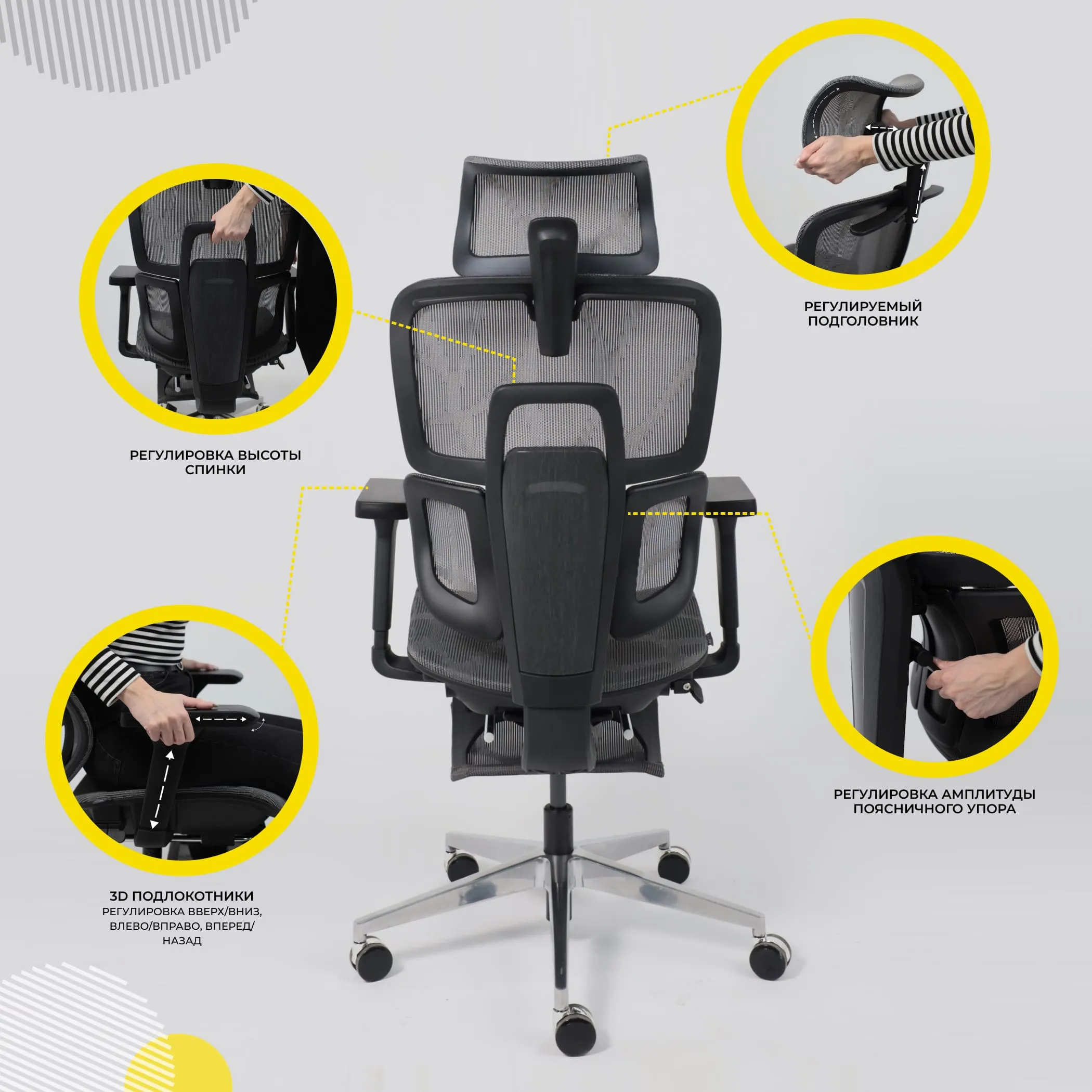 | Наличие подлокотников | регулируемые (3D подлокотники) |