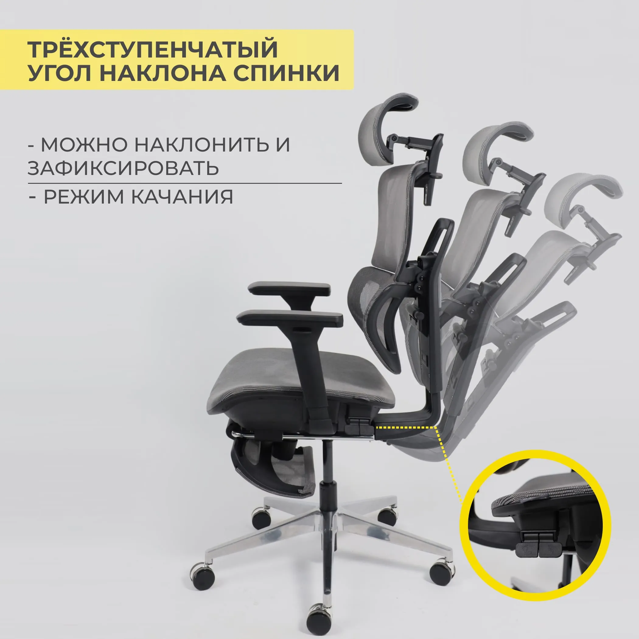 | Механизм регулировки | синхромеханизм с независимым наклоном спинки относительно сиденья |