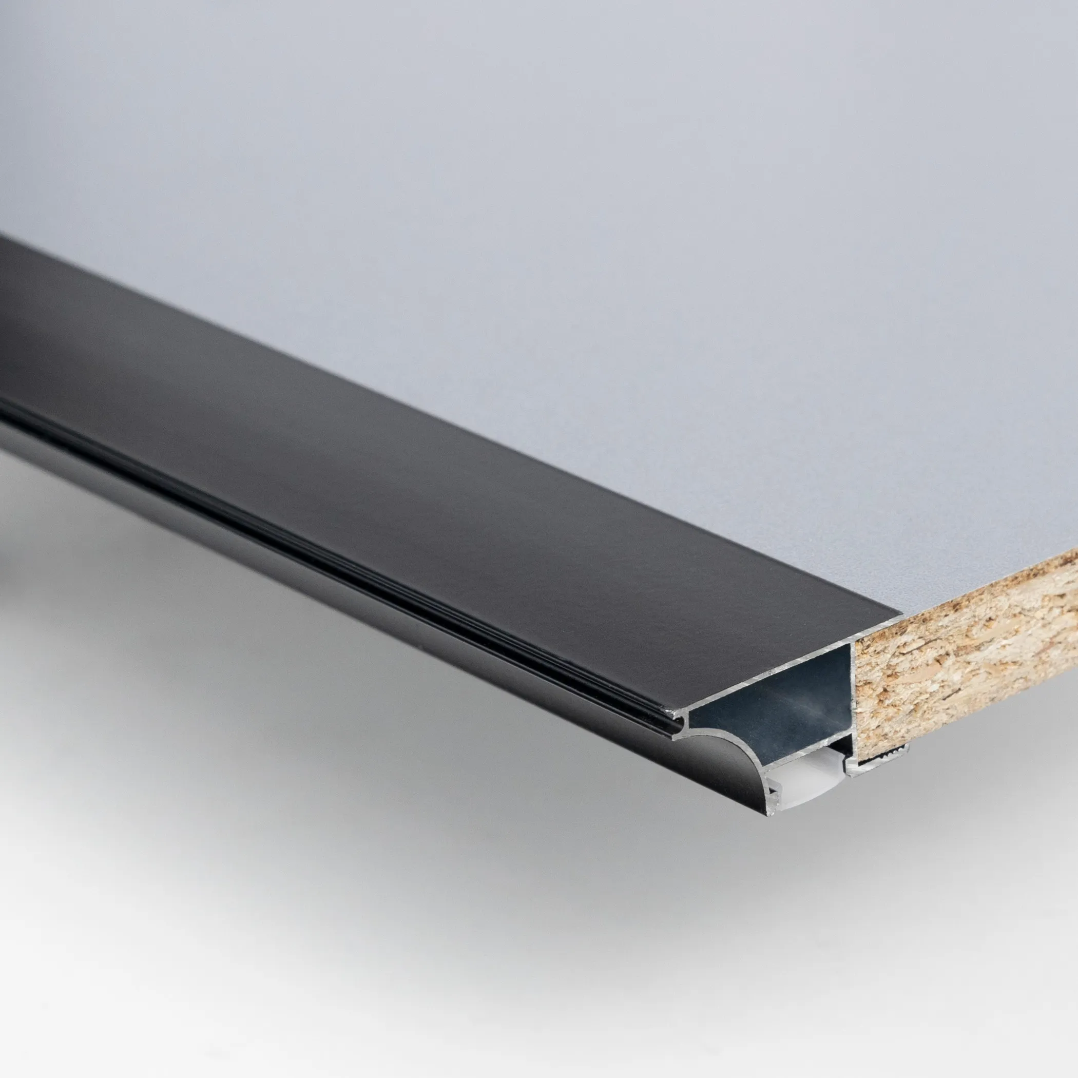 Профиль алюминиевый накладной/торцевой для ДСП 18,5мм, цвет черный. Профиль предназначен для плиты от 18мм, для лучшего соединения рекомендуется нанести слой герметика на устанавливаемую поверхность.
