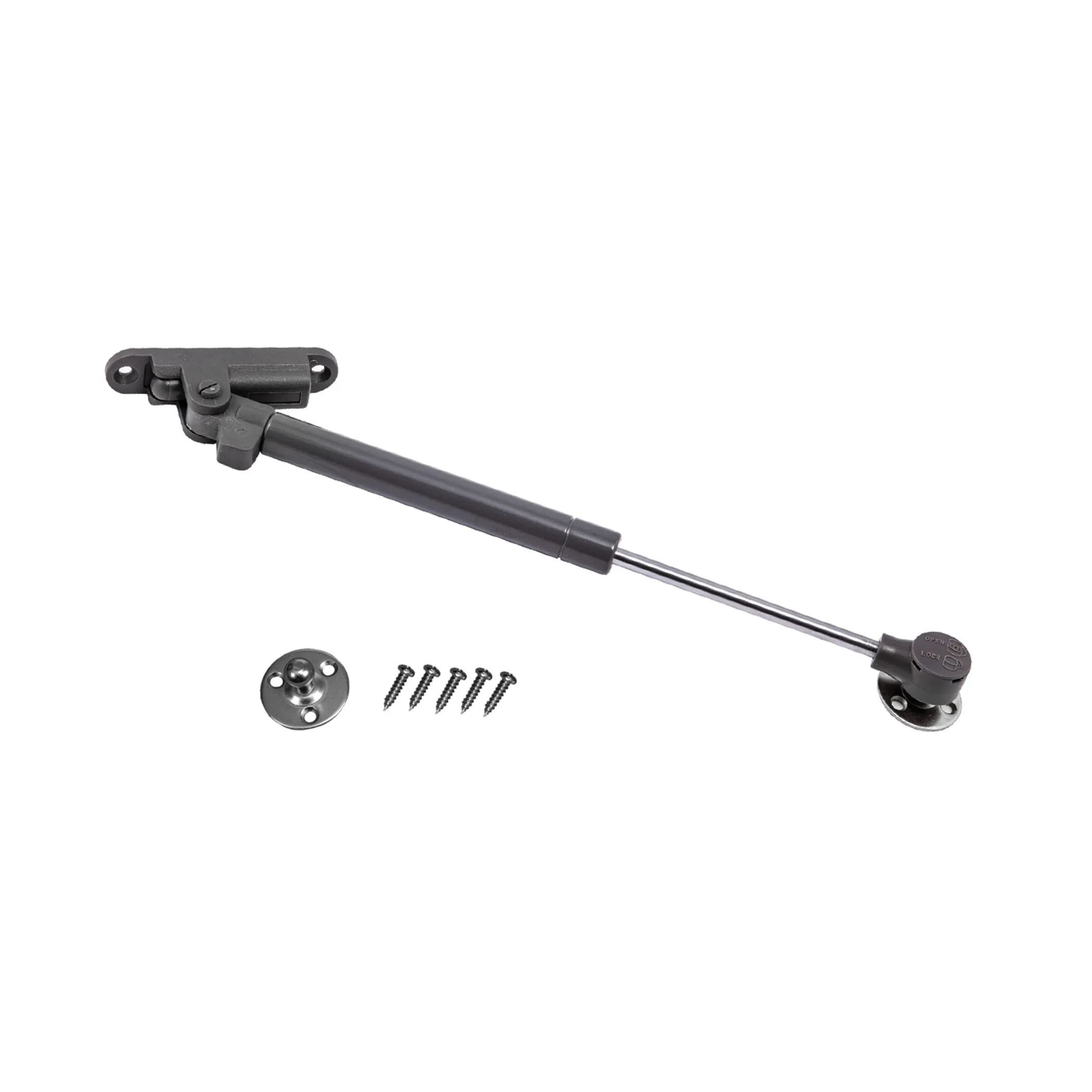 Подъемный механизм (подъемник) с амортизатором для верхней базы кухни, представляет собой трубку с газом и штоком, системой уплотнителей и пыльников. Мощность 100 Ньютонов. Обеспечивает открытие фасада до верхней точки. В креплении установлен демпфер для плавного и медленного закрытия без удара фасада по корпусу.