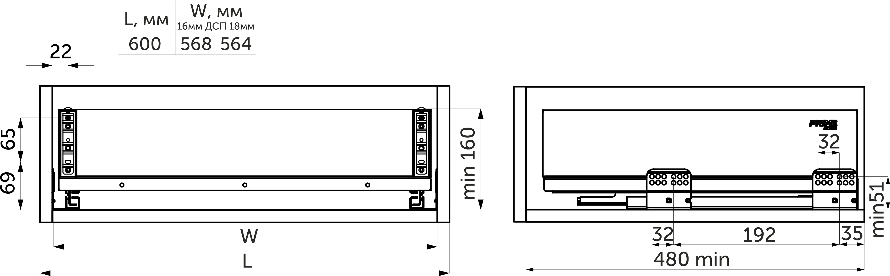 | Ширина фасада, мм | 600 |