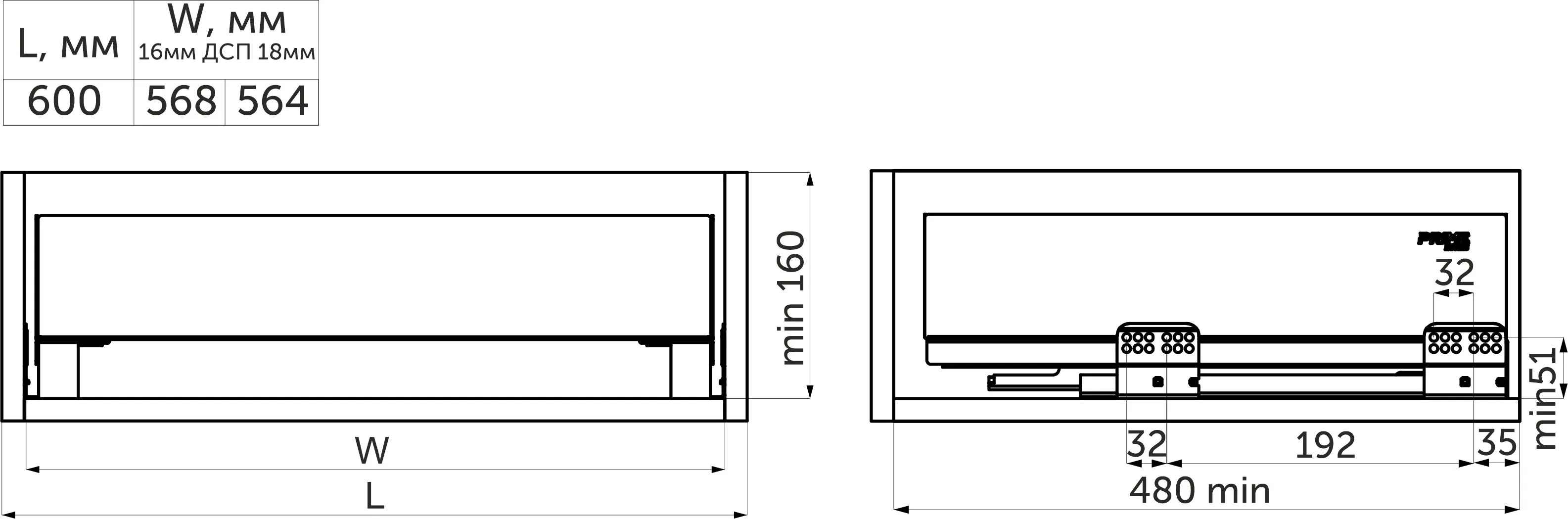 | Ширина фасада, мм | 600 |