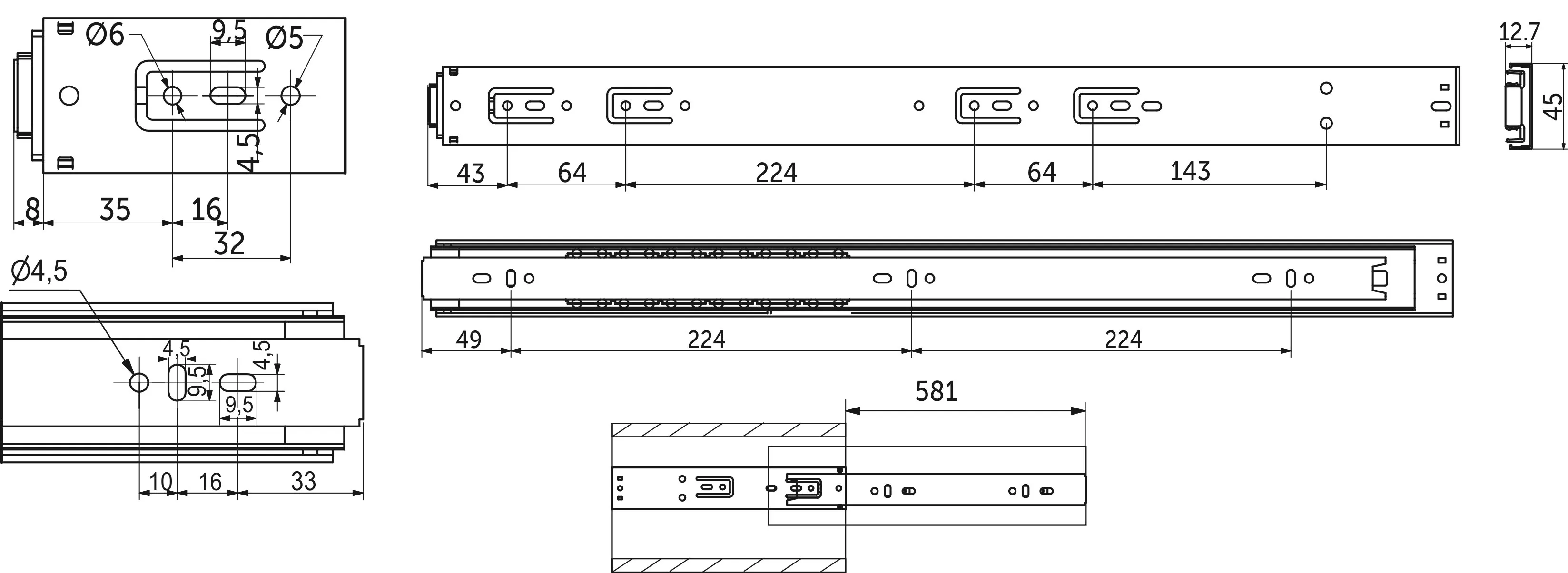 Данные направляющие широко применимы как дома, так и в офисах, коммерческих помещениях. Подойдёт для установки в шкафах и гардеробных, в консолях и тумбах, в письменных столах и комодах.
