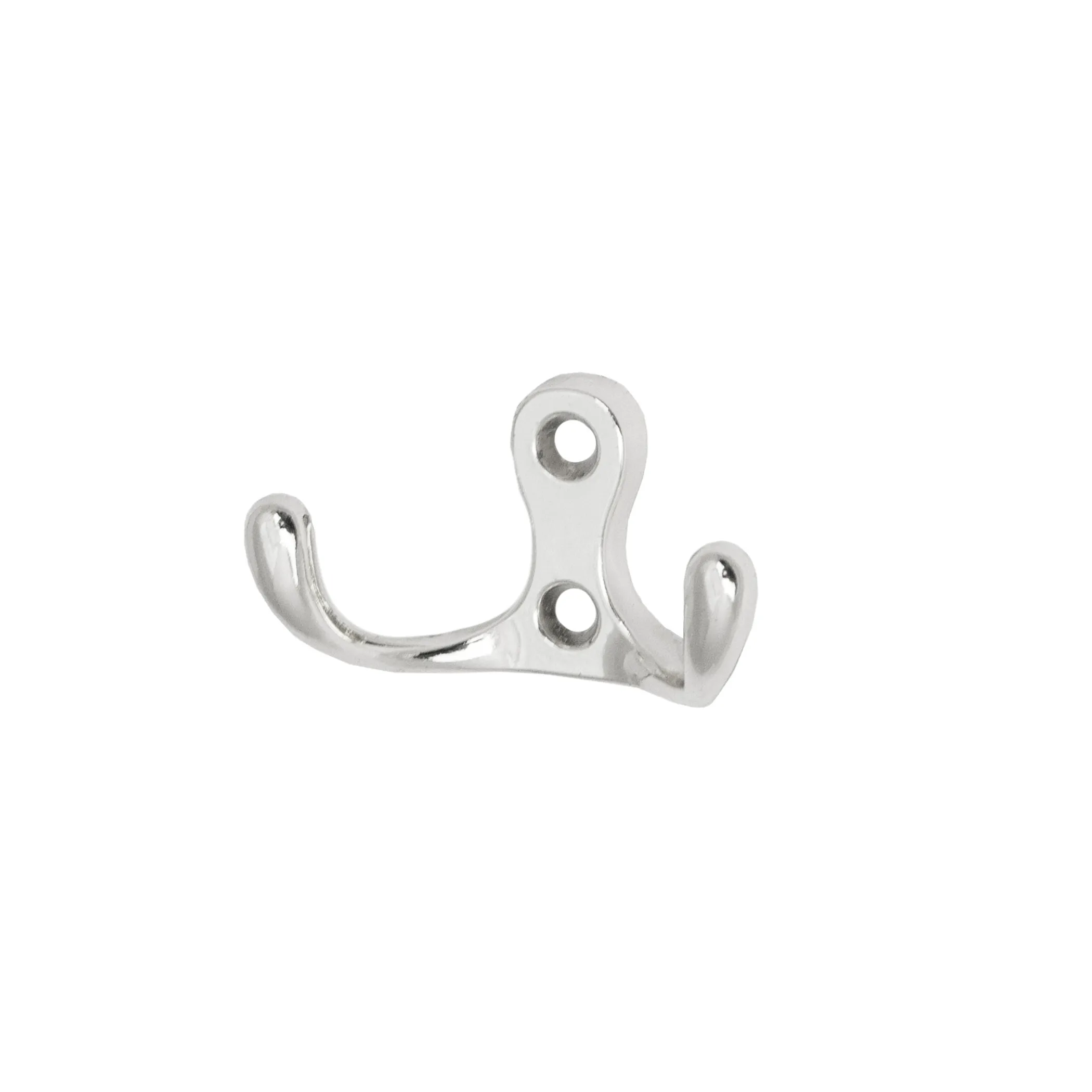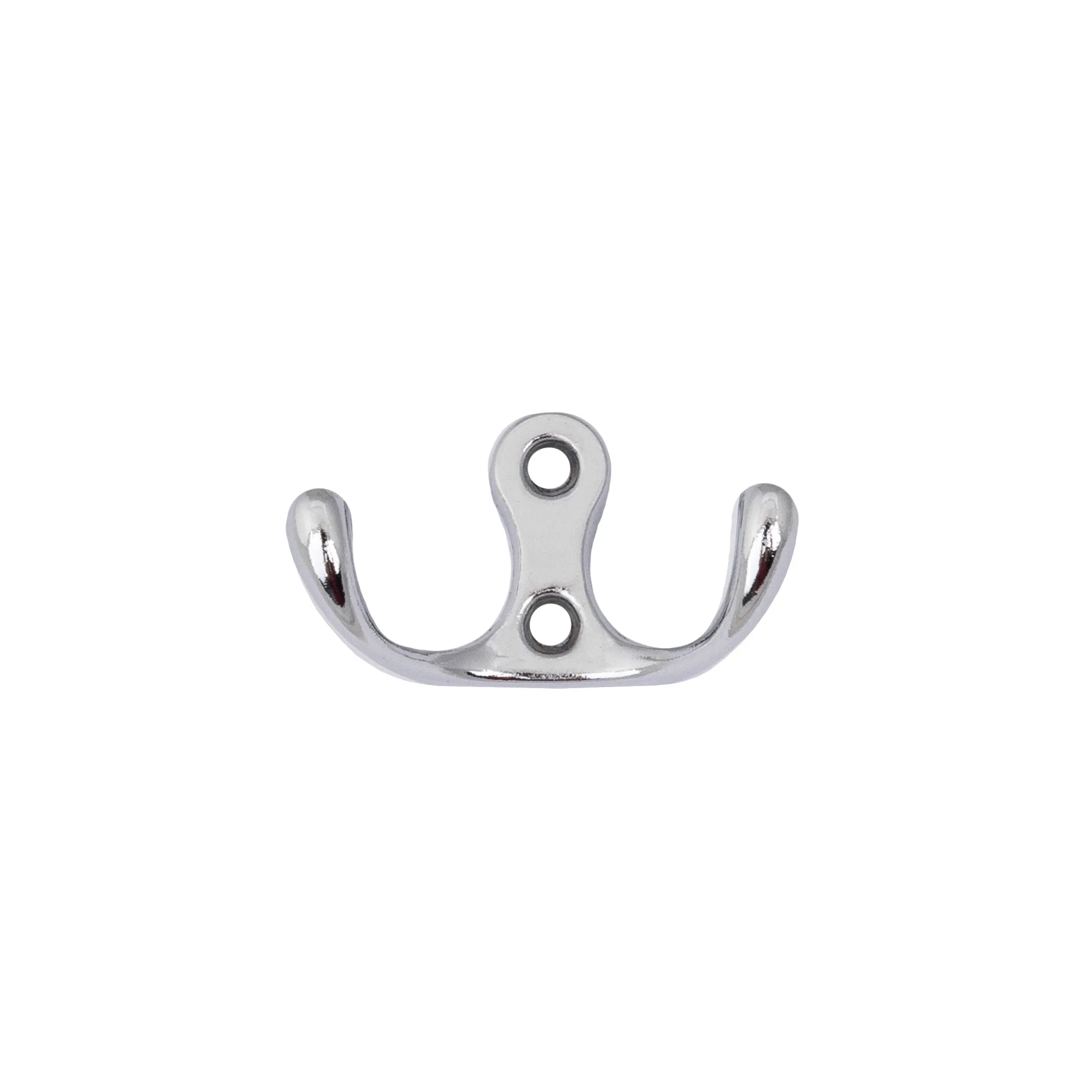 Двухрожковый металлический настенный крючок. Цвет хром.