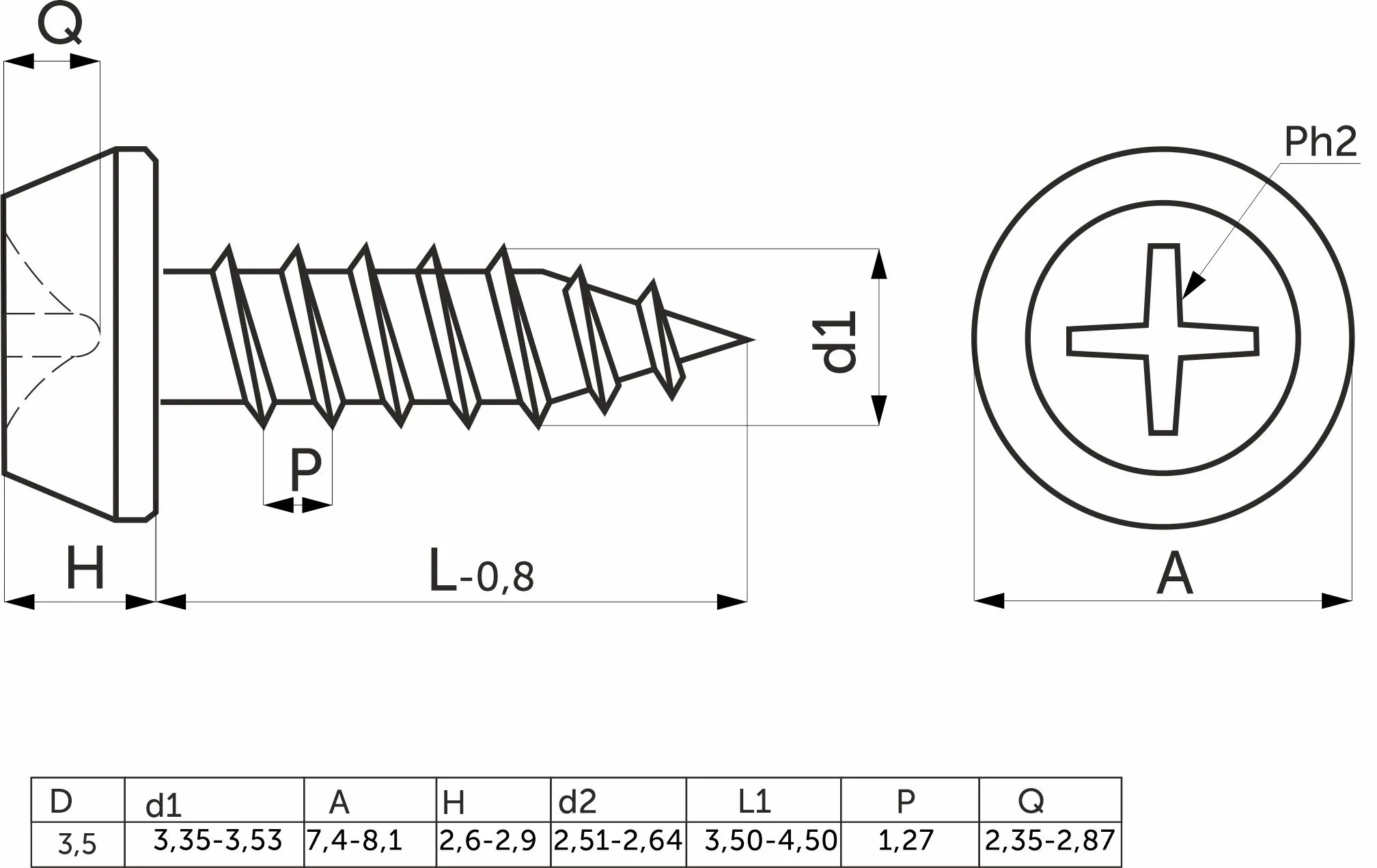 | Тип шлица | PH |