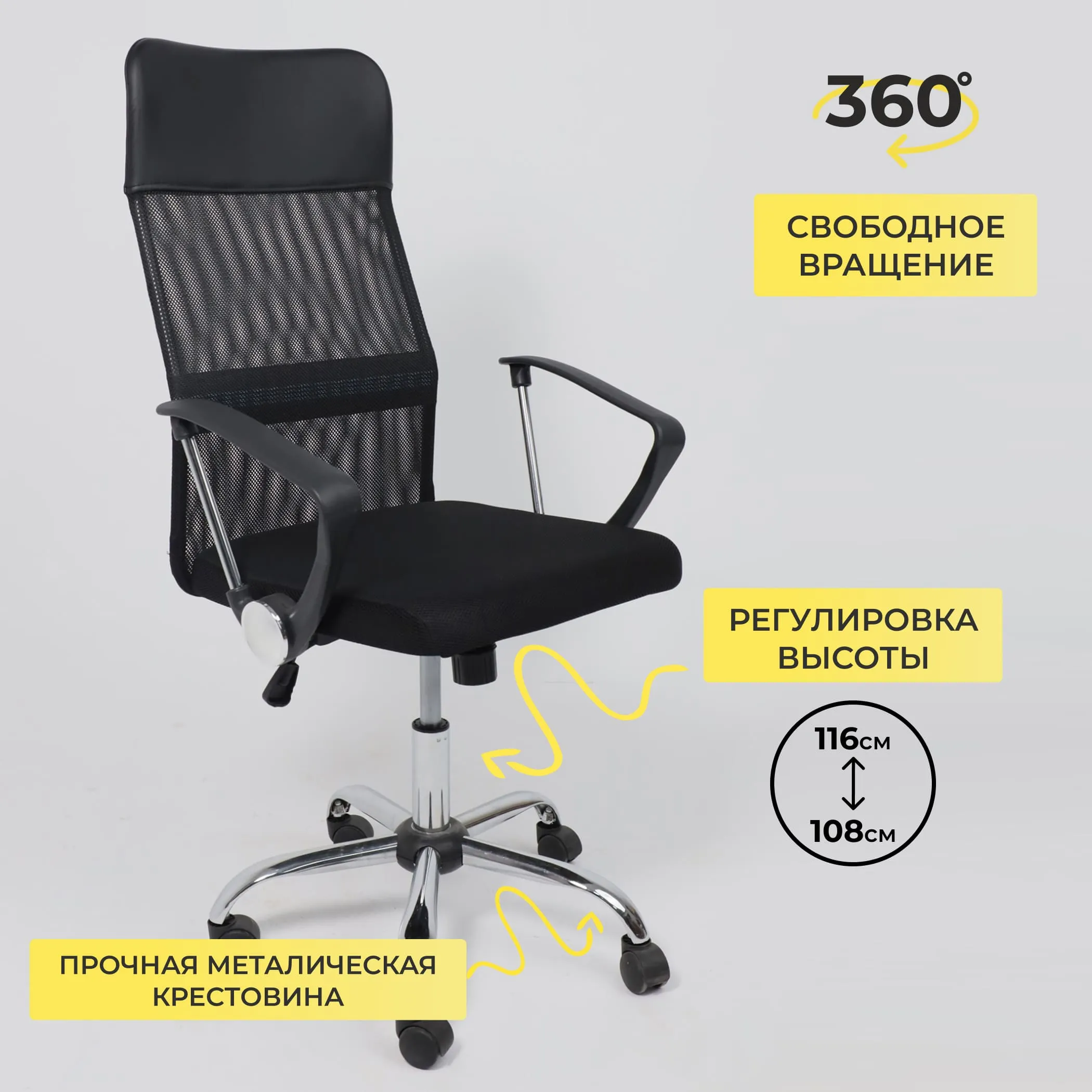 Кресло поворотное ARIA, черный, РБ